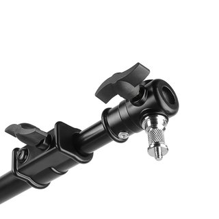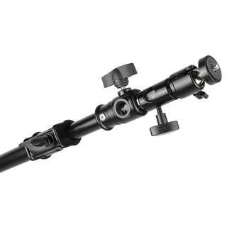 Стрела LSB-190H состоит из двух секций с пружинной амортизацией для плавного и точного позиционирования оборудования. Механизм наклона с фиксирующим рычагом позволяет устанавливать угол от -140° до 170°. Выдвижная конструкция длиной 120-214 см обеспечивает точное расположение камеры над объектом съемки без попадания стойки в кадр.