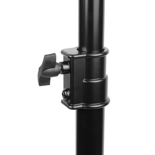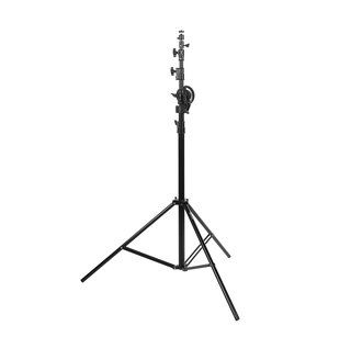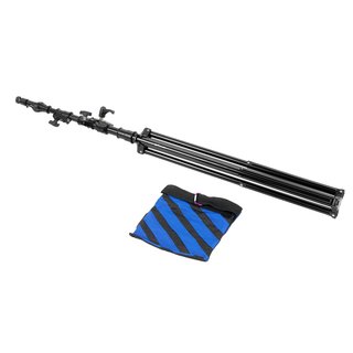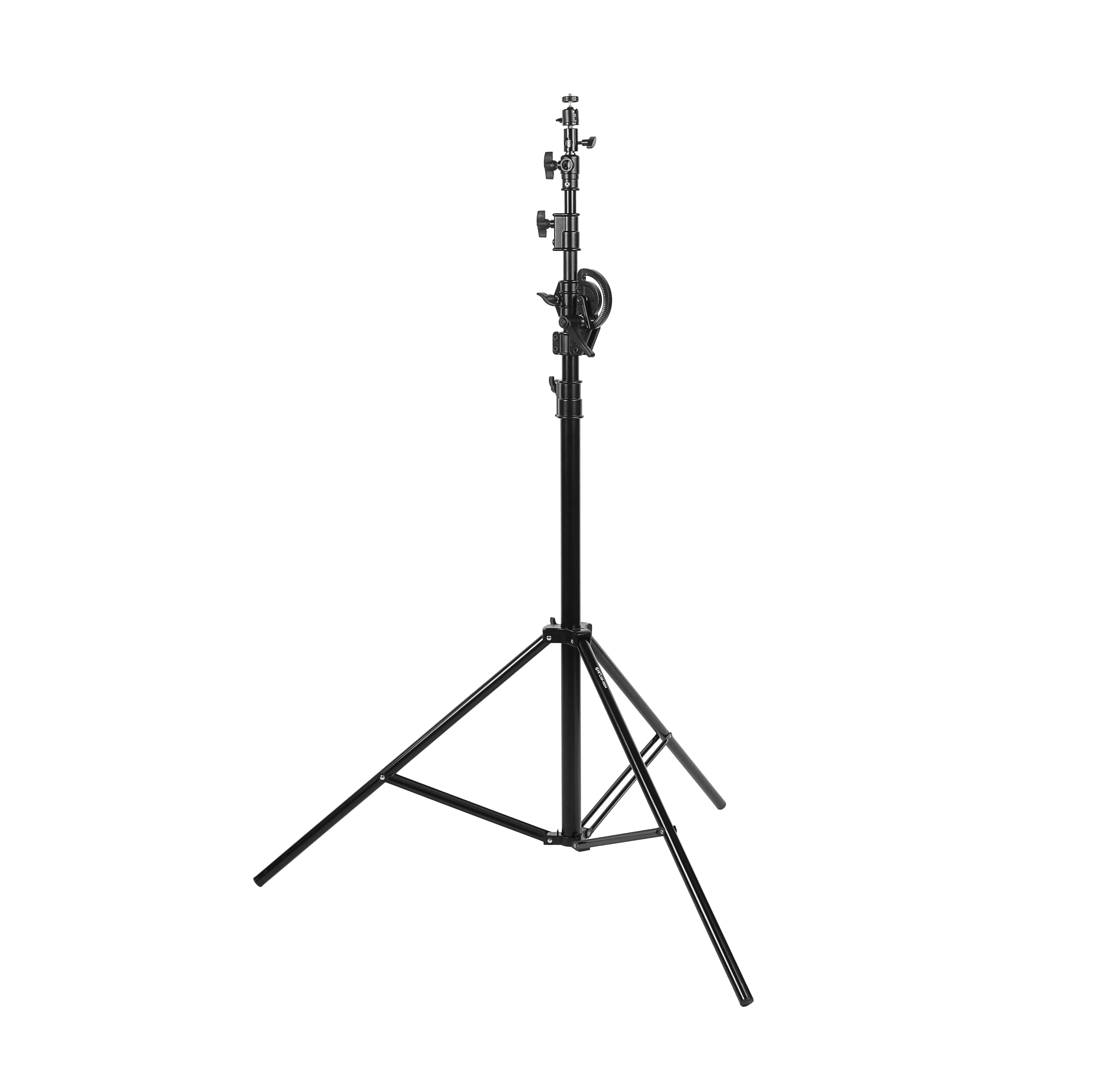 Двухсекционная стальная телескопическая стойка обеспечивает рабочую высоту до 190 см. Секции оснащены пружинной амортизацией, которая обеспечивает плавное и безопасное опускание оборудования при ослаблении винтовых зажимов. Широкое основание с размахом 120 см гарантирует устойчивость конструкции. Для работы в сложных условиях при максимальном вылете стрелы или на ветру можно дополнительно усилить основание стойки дополнительным грузом, например, заполненным мешком для песка Falcon Eyes SP-BG11.