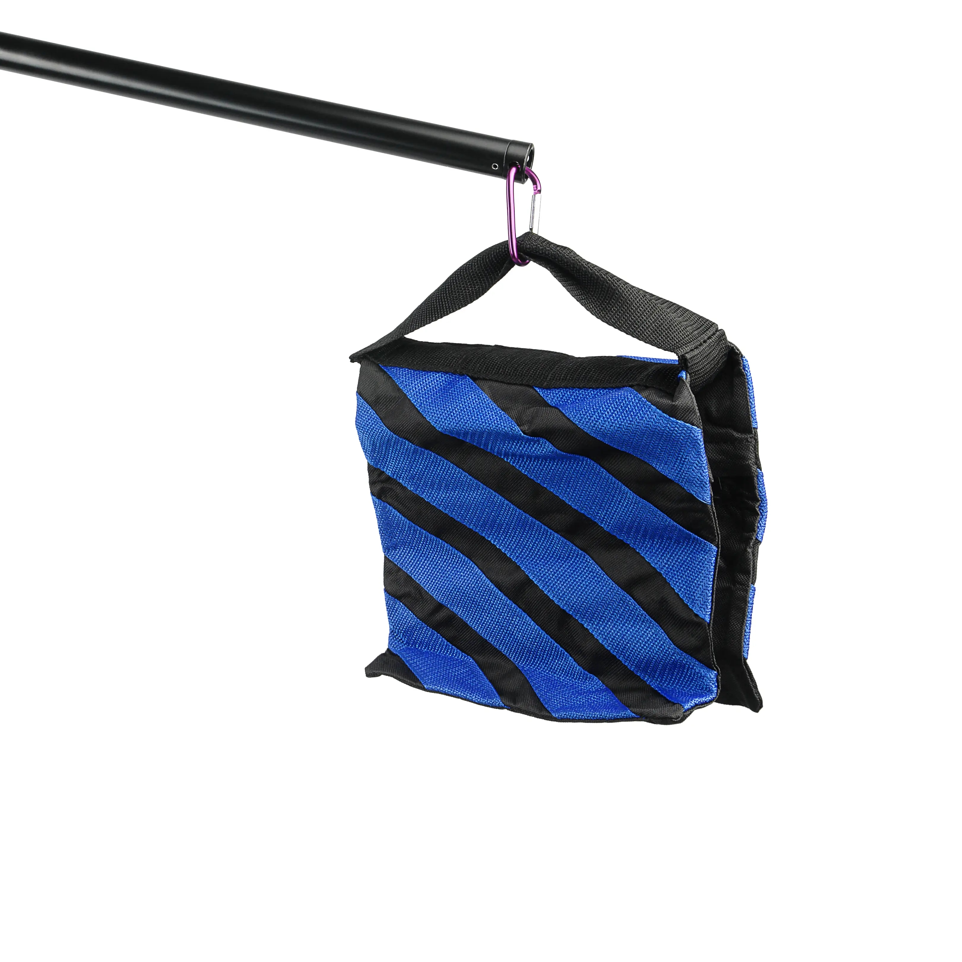 В комплектацию входит мешок для песка, выполняющий функцию груза-противовеса. Мешок крепится на основание стрелы, и его можно наполнить на месте съемки любым сыпучим материалом для обеспечения дополнительной устойчивости при максимальном выдвижении перекладины.