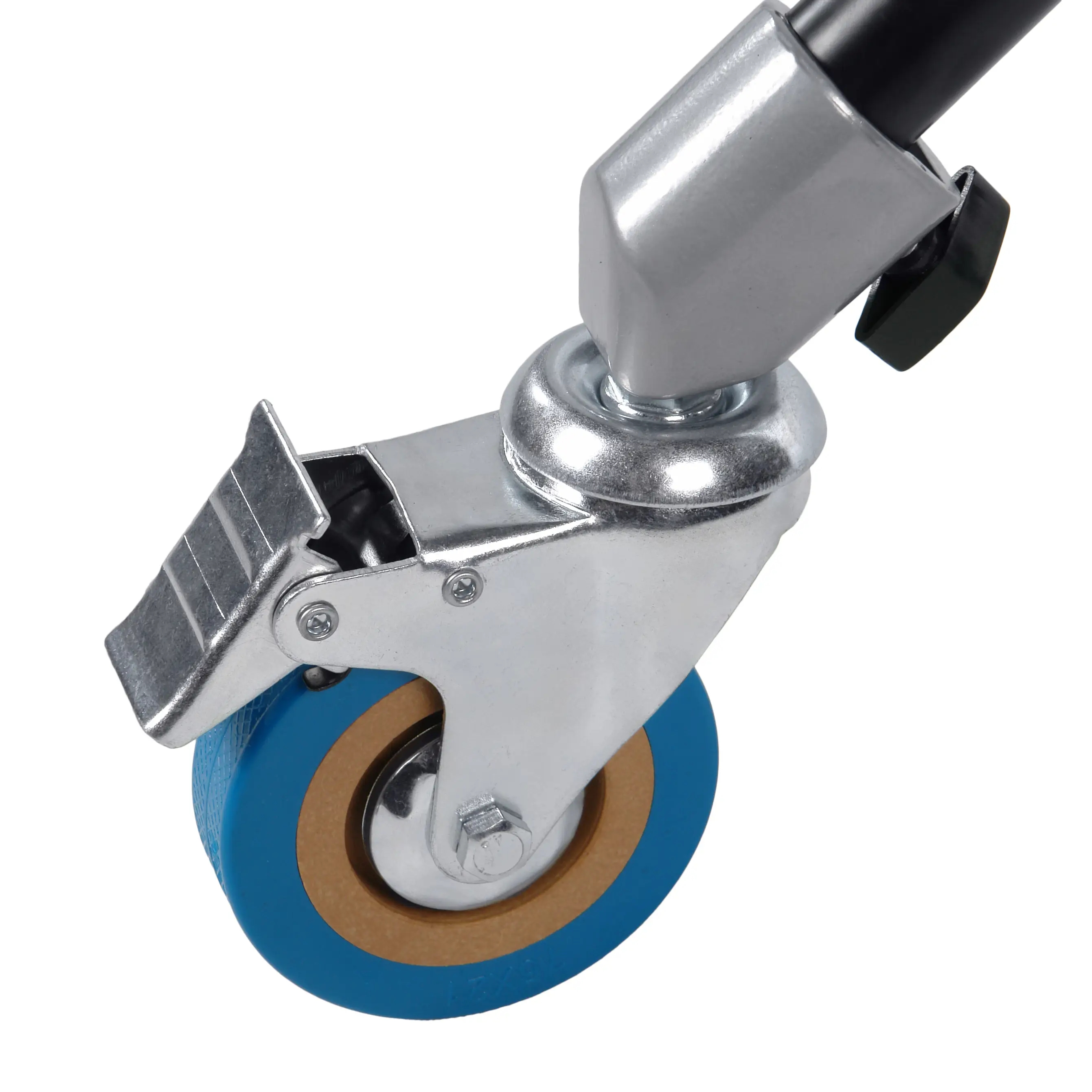 Для мобильности кран-стойка оснащена съемными роликами диаметром 75 мм с индивидуальными тормозами. Это позволяет легко перемещать собранную конструкцию по студии и быстро демонтировать колеса для стационарной установки.