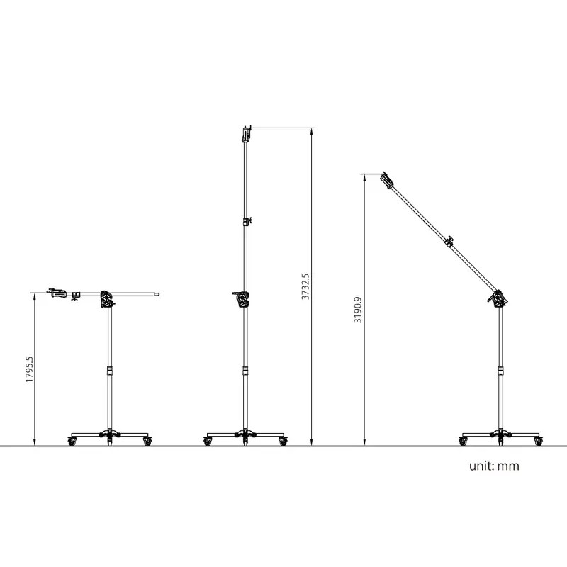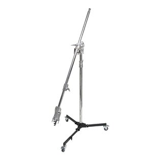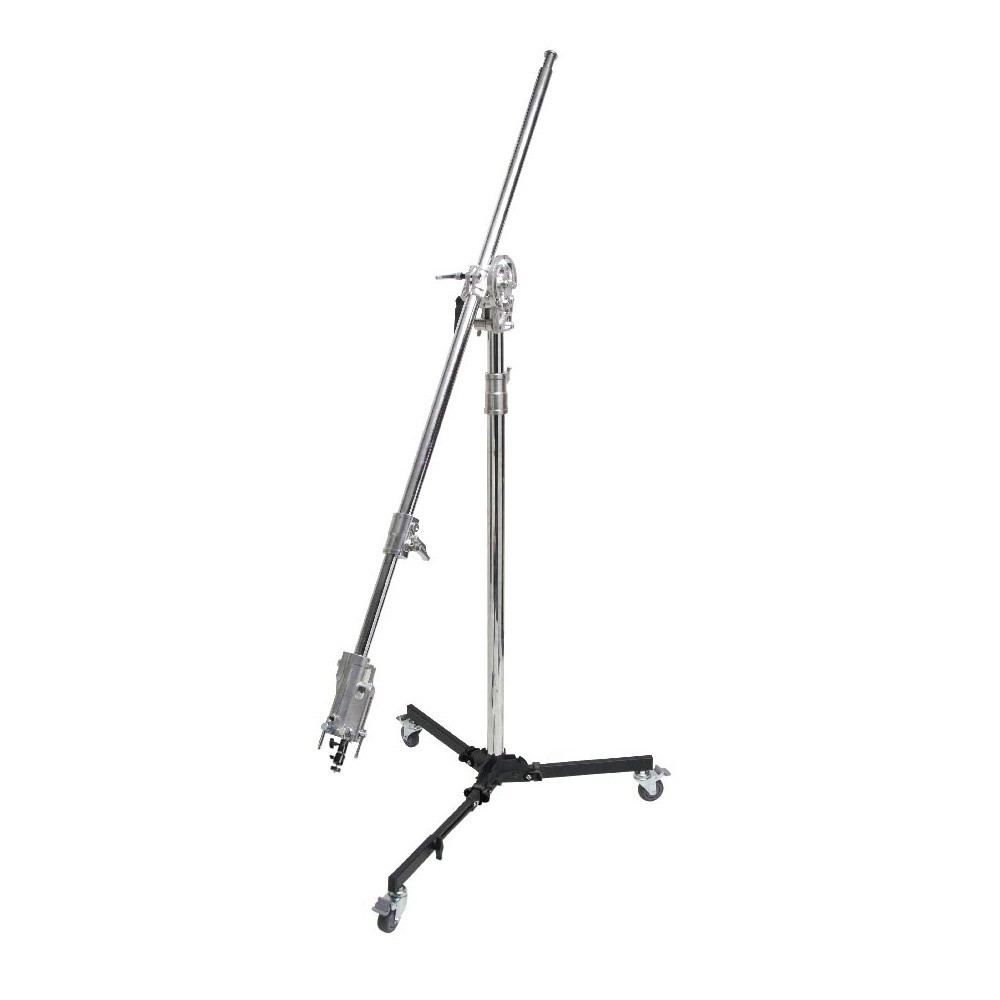 KUPO 346MH JUNIOR BOOM ROLLER STAND — универсальная и надежная стойка, созданная для работы на съемочной площадке. Комплектуется шаровой головкой для цифровых фото- и видеокамер, камеру можно установить на высоте до 380 см, что позволит оператору делать верхние ракурсы, панорамы и т.д.
