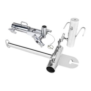 Комплект KUPO KCP-613 SINGLE PIPE BOOM RIG для сборки стрелы menace arm предназначен для выноса осветительных приборов, флагов или рамок за пределы кадра с максимальной безопасностью и устойчивостью. Используется со стандартной трубой 1-1/4" стандарта Schedule 40 (Ø42,4 мм). Передний адаптер оснащён поворотным штифтом Baby и гнездом Junior, что позволяет устанавливать осветительные приборы или аксессуары — такие как флаг или рама — под любым углом. Задний адаптер дополнительно оснащён двумя приваренными крюками для навешивания грузов (sandbags), повышающих устойчивость стрелы, а также D-образным кольцом для крепления натяжного ремня к D-кольцам переднего и центрального адаптера, установленного на крепежной головке. Соединительный адаптер оснащён двойными фиксирующими рукоятками для безопасной установки трубы с двух сторон. Конструкция включает уникальную фиксирующую рукоятку с защитой от выпадения — даже при полном выкручивании ручка остаётся на месте. Для дополнительной безопасности предусмотрен страховочный трос с шплинтом.