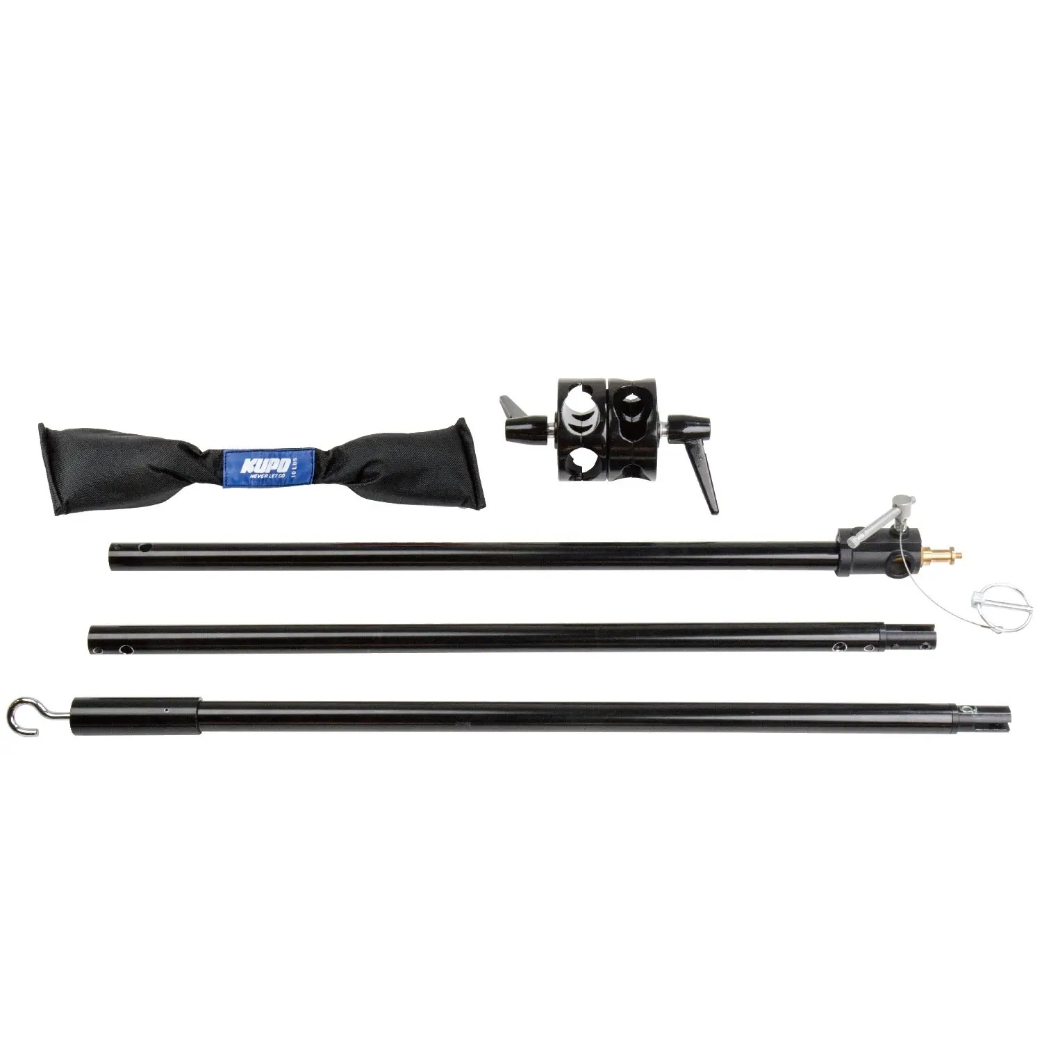 Стрела KUPO KCP-621B ALUMINUM BABY BOOM ASSEMBLY, состоящая из трёх соединяемых алюминиевых труб с анодированным чёрным покрытием, достигает длины 2 м и выдерживает нагрузку до 3 кг. Быстрая сборка и разборка осуществляется с помощью встроенного шестигранного ключа в Т-образной рукоятки. Длина каждой трубы в разобранном виде — 71 см, что удобно для хранения и транспортировки. Металлический поворотный зажим крепится на секции стойки с диаметром 20 мм (3/4"), 25 мм (1"), 30 мм (1 1/8") или 35 мм. В комплект входит груз-противовес, который размещается на крюке. Также предусмотрен страховочный трос для дополнительной безопасности. Для удобной транспортировки можно дополнительно приобрести сумку KSB-621.