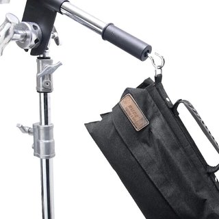 Мешок для песка KUPO KSD-1680S SMALL-SIZED SAND BAG изготовлен из прочного нейлона Cordura 1000D и выполнен в форме седельной сумки. Мешок для песка Kupo идеально подходит для навешивания на ножки стоек и стрелы. Дополнительные заклепки, двойная прострочка и внутренняя окантовка обеспечивают исключительную прочность. Двойные ручки сверху и снизу делают переноску особенно удобной. Высококачественная застежка-липучка надежно удерживает содержимое на месте, а плотные внутренние вкладыши из пластика предотвращают высыпание песка и защищают от влаги. Мешок оснащен резиновой ручкой для удобного перемещения, а также люверсом и карабином для крепления на крюки стрелы. Эти мешки — незаменимый элемент безопасности на съемочной площадке: предотвращают опрокидывание стоек, обеспечивают стабильную поддержку камеры и служат противовесом для стрел, помогая работать спокойно и без лишних рисков.