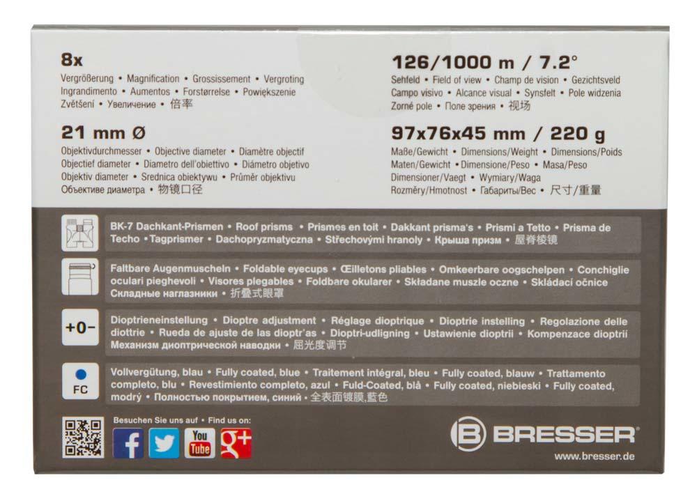 Bresser Travel 8x21 – это туристический бинокль с 8-кратным увеличением, собранный на базе компактных roof-призм. Он отлично подходит для дневных наблюдений, мало весит и не занимает много места в рюкзаке. Благодаря эргономичной конструкции длительные наблюдения с рук не утомляют, поэтому бинокль Bresser Travel 8x21 идеально подходит для походов и путешествий. Возьмите его с собой, и вы сможете увидеть все красоты окружающего мира!
