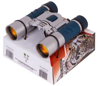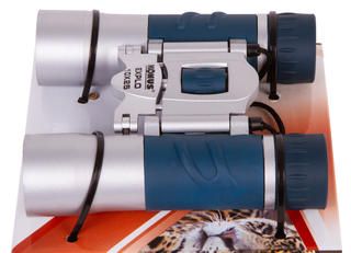 Оптика бинокля сделана из стекла. Roof-призмы компактны и хорошо преломляют свет, объективы имеют достаточный диаметр для наблюдений в светлое время суток, а рубиновое просветление позволяет видеть все четче. Оптика защищена прочным корпусом, причем резиновые вставки по его бокам делают захват бинокля более удобным и надежным.