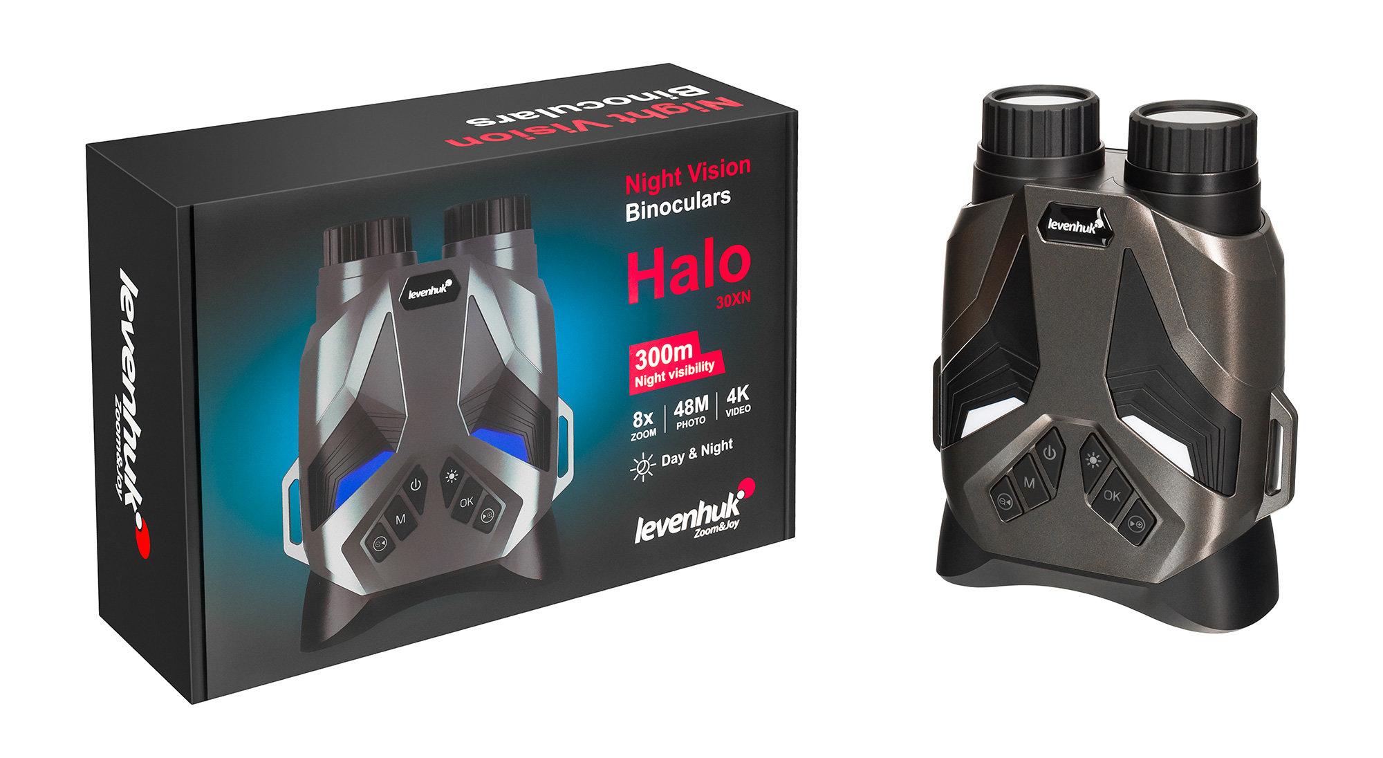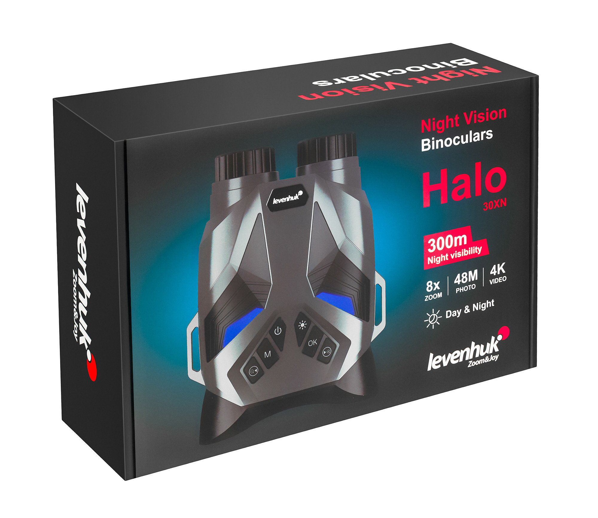 Цифровой бинокль ночного видения Levenhuk Halo 30XN – это современный высокотехнологичный прибор, который поможет охотникам, разведчикам и спасателям оперативно ориентироваться в темноте и эффективно искать объекты, диких животных и человеческие фигуры как при дневном свете, так и ночью. Мощное увеличение до 32х, достигаемое за счет оптической кратности 4х, усиленной цифровым зумом 1–8х, позволит пользователю вести наблюдения как на близкие, так и на очень дальние расстояния. В условиях темноты, особенно в облачную или безлунную ночь, дальность видимости снижается, однако это компенсируется надежным ИК-осветителем, при помощи которого можно обнаружить различные объекты на расстоянии до 250–300 метров от места наблюдения. Изображение окружающего мира формируется чувствительной CMOS-матрицей и выводится на жидкокристаллический IPS-экран с разрешением 640х480 пикс. Фактическая диагональ дисплея равняется 3 дюймам, но благодаря использованной в конструкции выпуклой линзе она визуально увеличивается до 7 дюймов. При этом яркость, высокая детализация и четкость картинки не теряются.