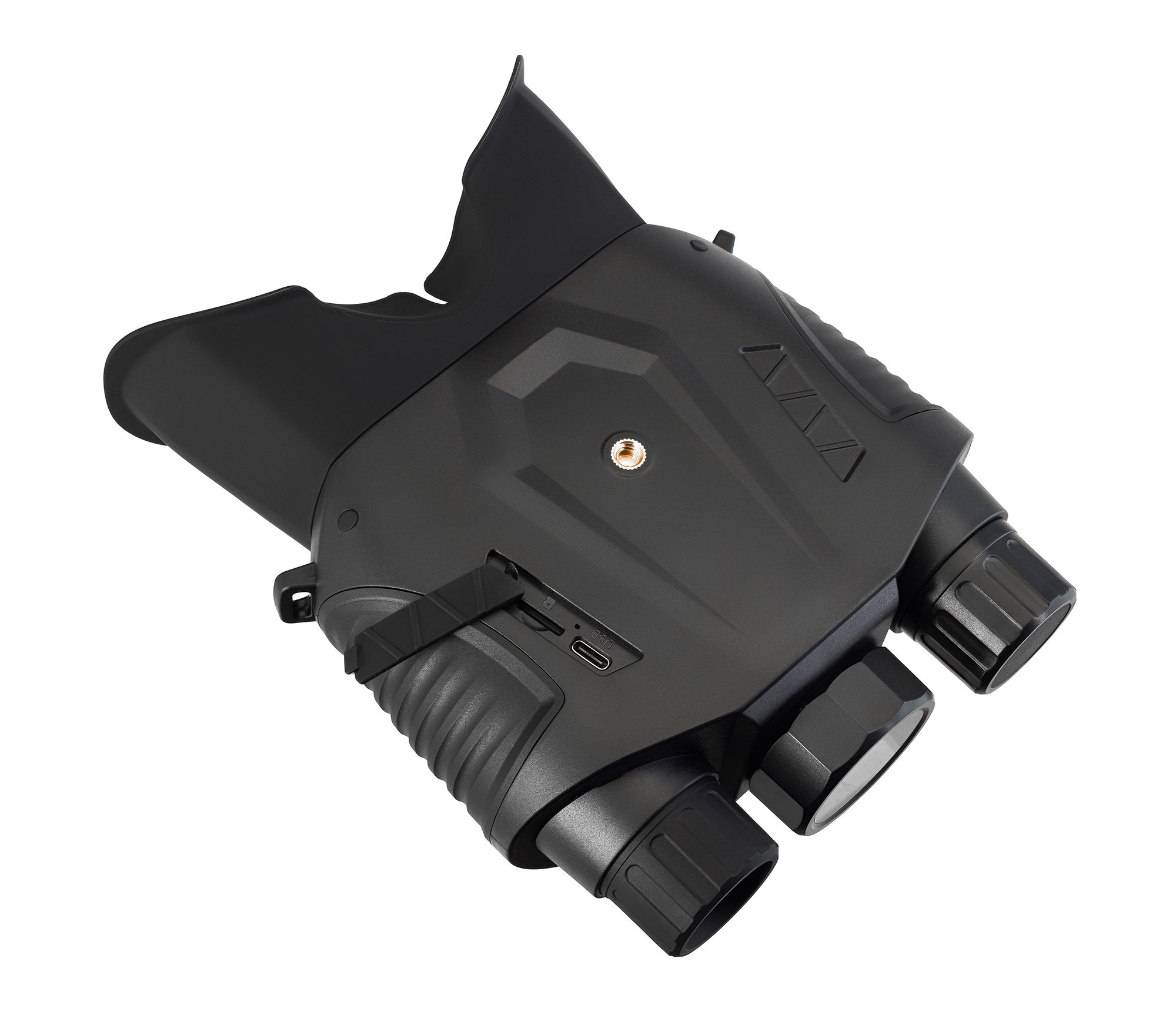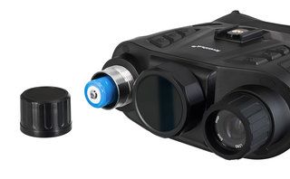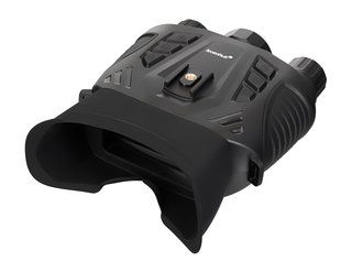 Для формирования изображения окружающего мира прибор использует современный CMOS-сенсор. Далее картинка выводится на жидкокристаллический IPS-экран с разрешением 640х360 пикс, где дополнительно увеличивается при помощи выпуклой линзы – это позволяет визуально воспринимать изображение как на 5-дюймовом дисплее, хотя реальная диагональ равна 2,4 дюймам, а также улучшает качество и детализацию картинки. Работа с биноклем в ночное время осуществляется за счет встроенной ИК-подсветки с длиной волны 850 нм и мощностью 3 Вт – этого достаточно для обнаружения объектов в полной темноте на расстоянии 250–300 метров. Точку, создаваемую осветителем с длиной волны 850 нм могут заметить дикие животные или сторонние ПНВ, – учитывайте это, если вам важно сохранить свое положение на местности в тайне. Пользователю доступна настройка яркости ИК-подсветки – можно выбрать один из 7 уровней. Также можно настроить яркость самого экрана – для него предусмотрено 8 уровней интенсивности.