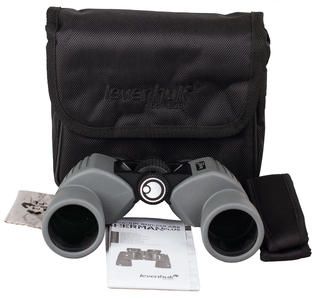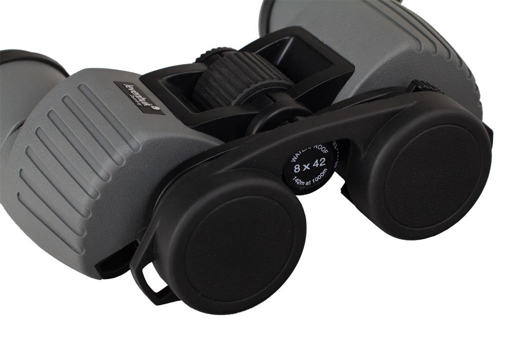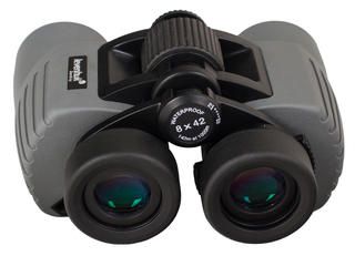 Герметичный корпус не пропускает пыль, грязь и влагу. Бинокль водонепроницаем. Плотное светло-серое покрытие корпуса смягчает удары и обеспечивает надежный хват.