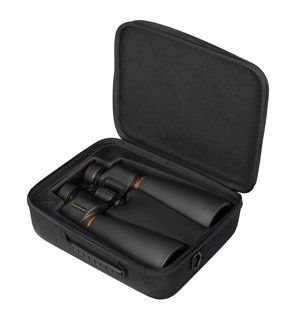Этот бинокль создан для использования в самых разных условиях. Его прочный алюминиевый корпус не только прорезинен для удобного хвата и защиты от ударов, но и обладает полной герметичностью (стандарт IP67). Внутреннее пространство заполнено азотом, что надежно защищает оптику от запотевания при резких перепадах температуры. Для максимального комфорта предусмотрены поворотно-выдвижные наглазники с 3 фиксированными положениями, которые позволяют удобно расположить перед глазами бинокль как при наблюдении в очках, так и без них. Точная настройка резкости осуществляется центральным барабаном, а кольцо диоптрийной коррекции на правом окуляре дает возможность скомпенсировать разницу в зрении между глазами. Для установки на штатив используется стандартное крепление 1/4 дюйма, причем необходимый адаптер-переходник уже входит в комплект.