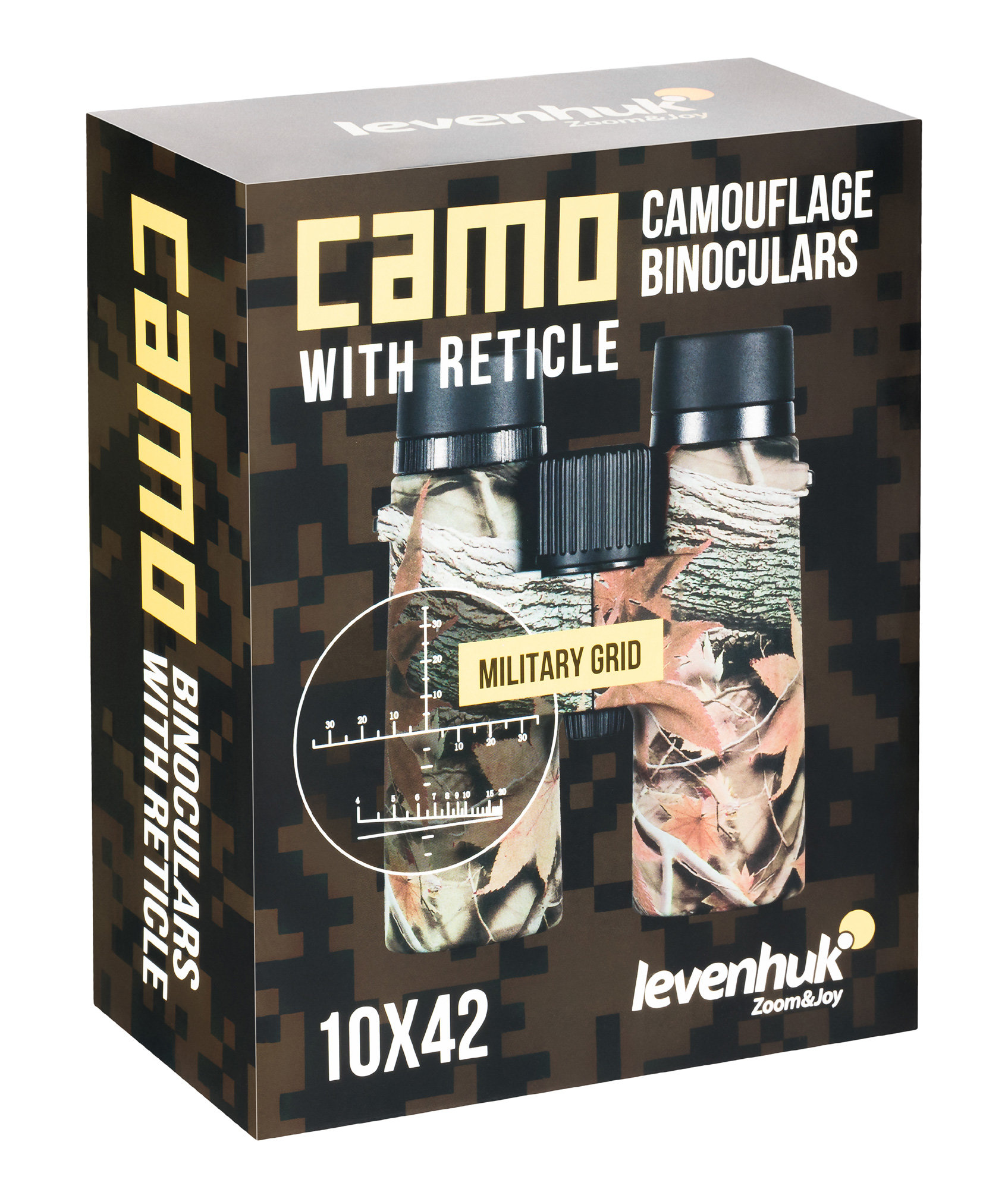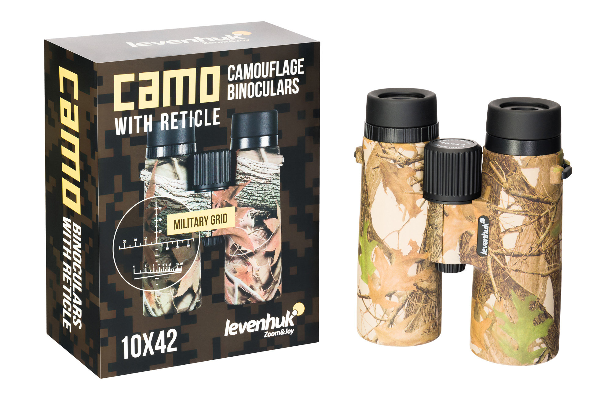 Бинокль Levenhuk Camo 10x42 станет прекрасным приобретением для любого охотника. Компактный прибор в корпусе защитного цвета обеспечит прекрасную видимость на дальних дистанциях благодаря 10-кратному увеличению и полностью просветленной оптике, а также позволит рассмотреть в деталях ближайшие объекты: минимальная дистанция для фокусировки составляет всего 3 метра. Фокусировочный барабан расположен по центру и имеет рельеф, поэтому удобен даже при настройке бинокля в перчатках.