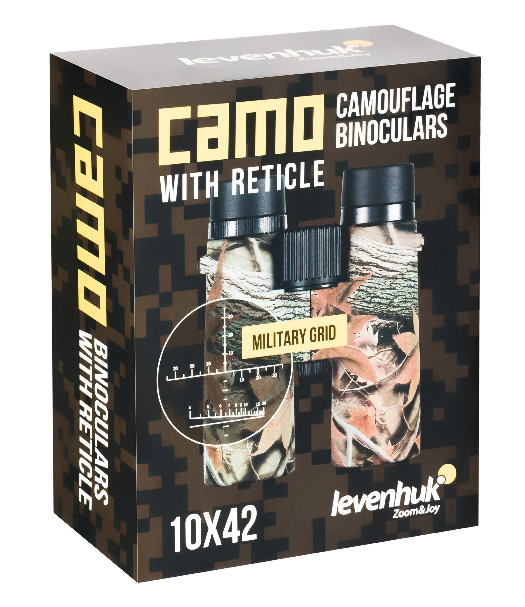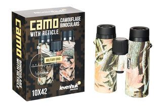 Бинокль Levenhuk Camo 10x42 станет прекрасным приобретением для любого охотника. Компактный прибор в корпусе защитного цвета обеспечит прекрасную видимость на дальних дистанциях благодаря 10-кратному увеличению и полностью просветленной оптике, а также позволит рассмотреть в деталях ближайшие объекты: минимальная дистанция для фокусировки составляет всего 3 метра. Фокусировочный барабан расположен по центру и имеет рельеф, поэтому удобен даже при настройке бинокля в перчатках.