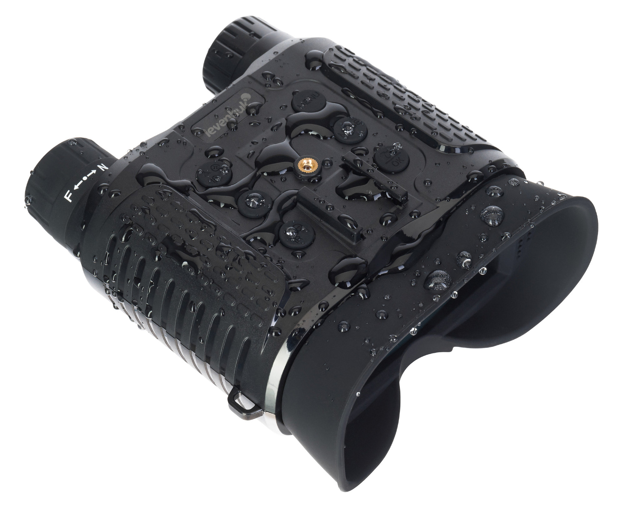 Эргономичное расположение кнопок управления открывает простой и быстрый доступ ко всему функционалу цифрового бинокля Levenhuk Halo 13X Helmet. Прочный пластиковый корпус защищен от брызг и рассчитан на использование в широком диапазоне температур. За питание отвечает сменный литиевый аккумулятор, на одном заряде которого прибор способен проработать от 3,5 до 8 часов. Срок непрерывной работы зависит от яркости подсветки. Экономить заряд помогает настраиваемая функция автоотключения – она может срабатывать через 1, 3, 5 или 10 минут бездействия.