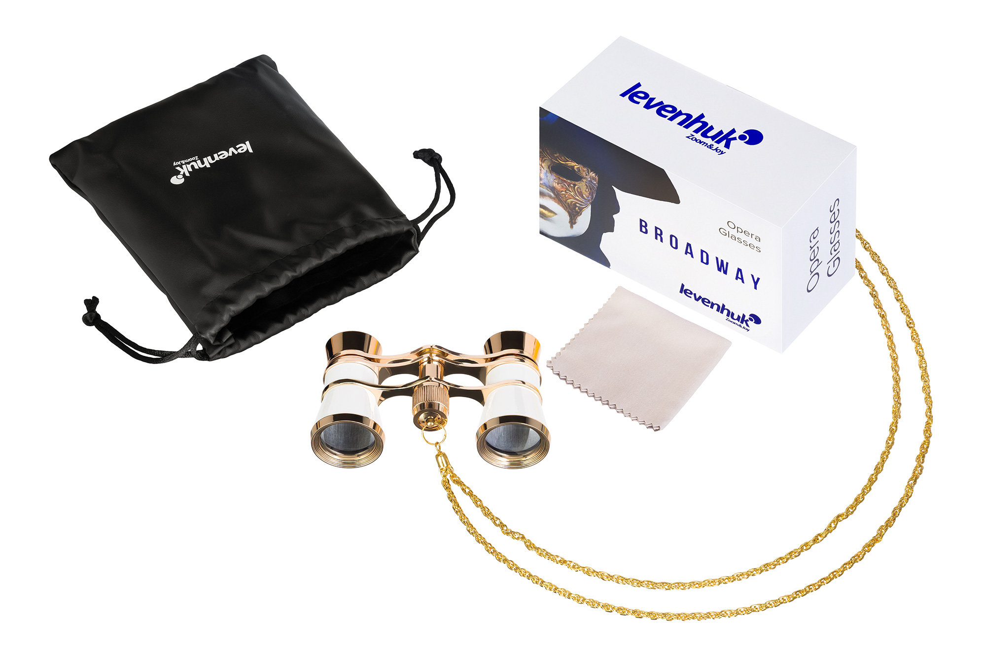 Levenhuk Broadway 325B – миниатюрная модель театрального бинокля, которая обеспечивает 3-кратное приближение. Прибор станет отличным дополнением к любому вечернему наряду: он имеет стильный черный корпус из металла с яркими деталями. Малый предел ближнего фокуса (всего 3,5 метра) делает бинокль прекрасным вариантом для наблюдений из любого ряда зрительного зала.