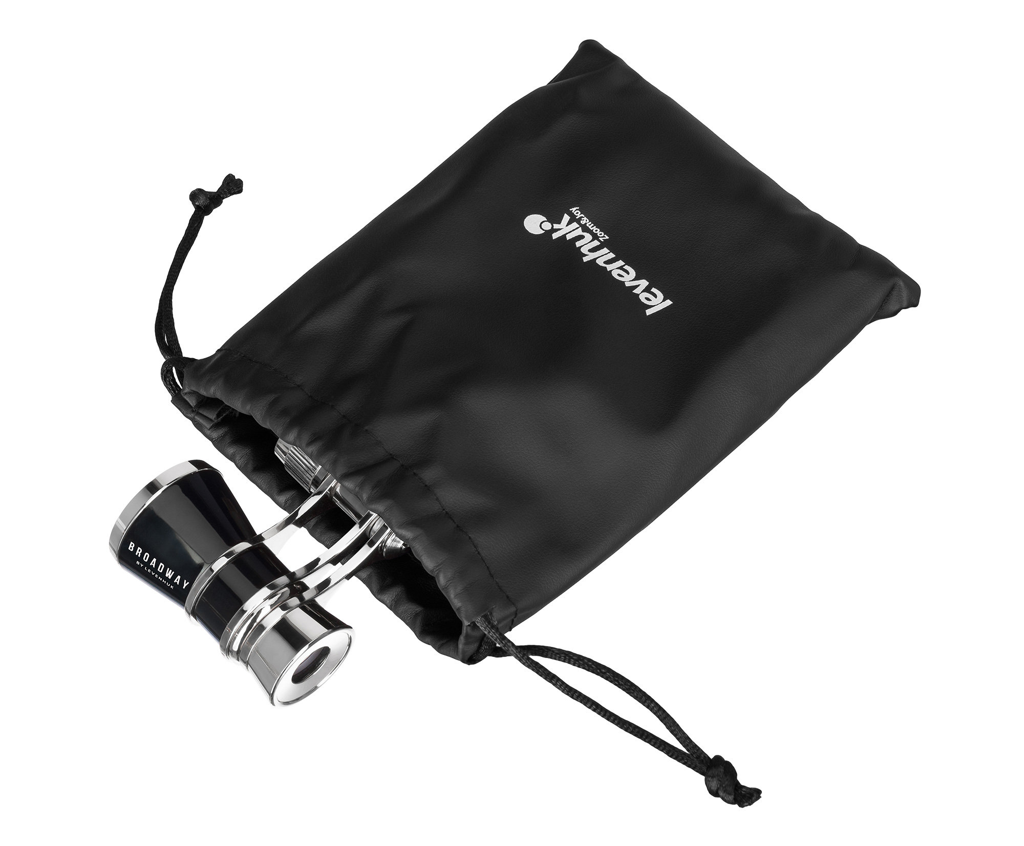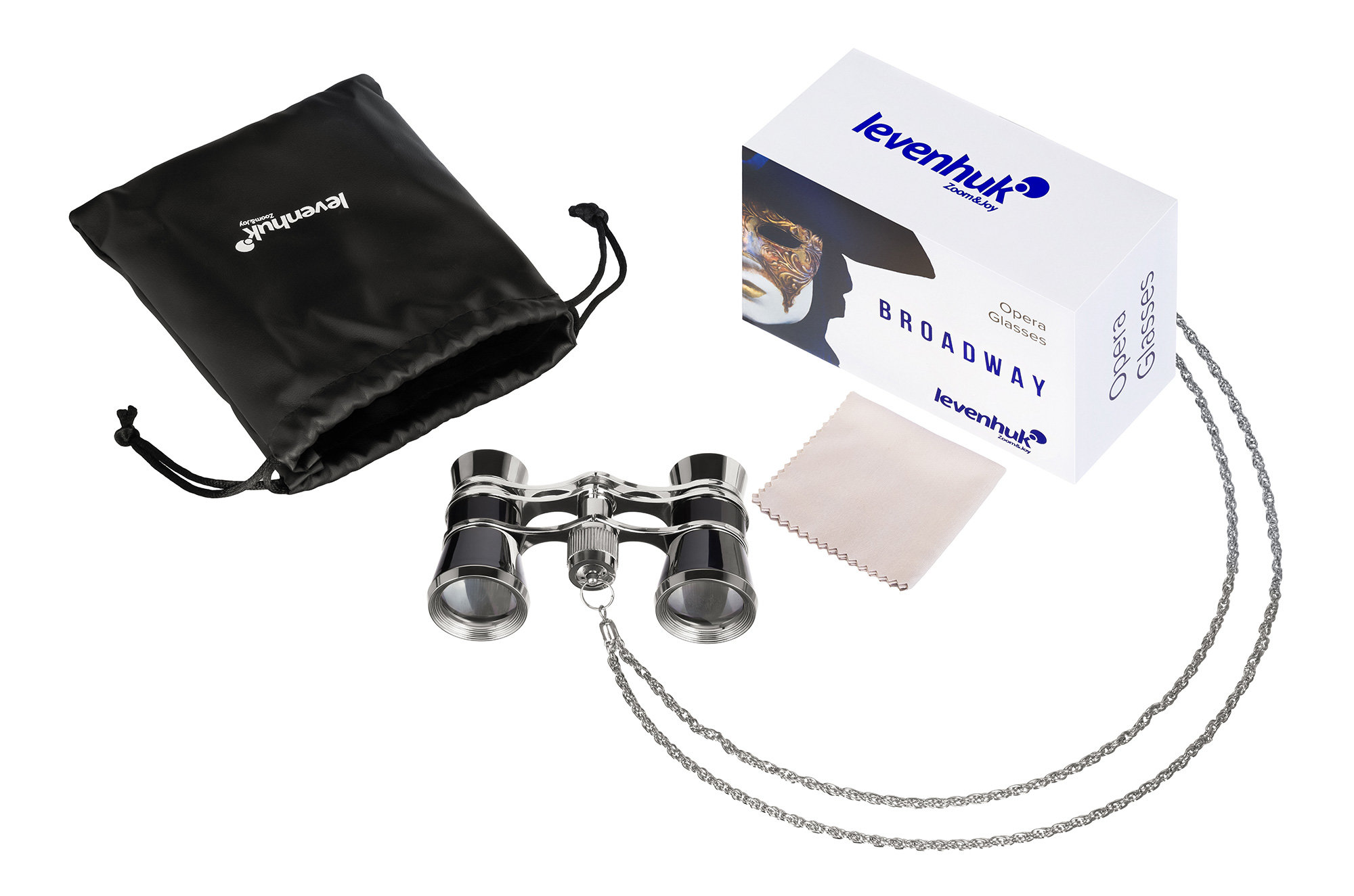 Levenhuk Broadway 325B – миниатюрная модель театрального бинокля, которая обеспечивает 3-кратное приближение. Прибор станет отличным дополнением к любому вечернему наряду: он имеет стильный черный корпус из металла с яркими деталями. Малый предел ближнего фокуса (всего 3,5 метра) делает бинокль прекрасным вариантом для наблюдений из любого ряда зрительного зала.