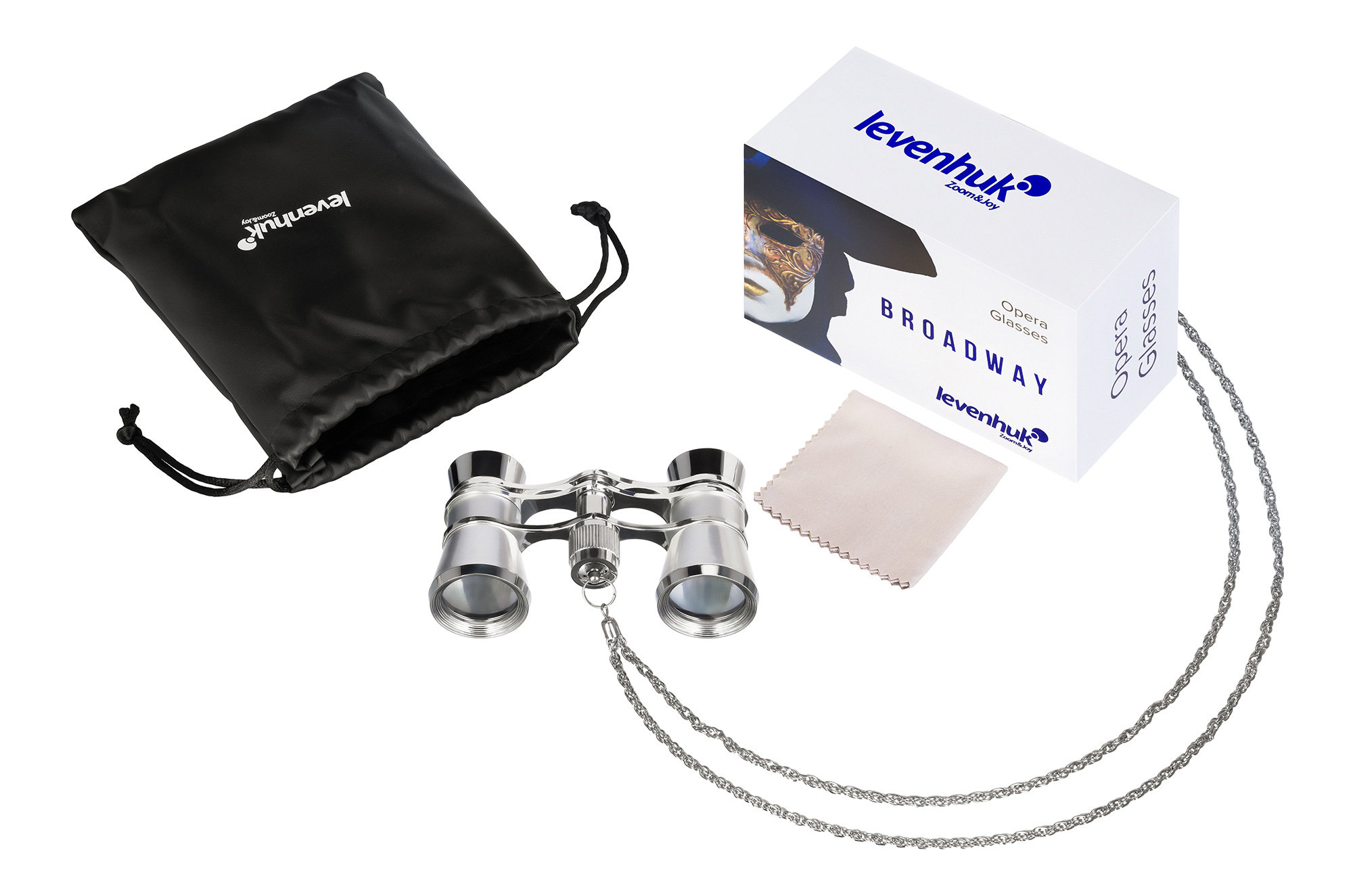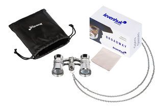 Levenhuk Broadway 325B – миниатюрная модель театрального бинокля, которая обеспечивает 3-кратное приближение. Прибор станет отличным дополнением к любому вечернему наряду: он имеет стильный черный корпус из металла с яркими деталями. Малый предел ближнего фокуса (всего 3,5 метра) делает бинокль прекрасным вариантом для наблюдений из любого ряда зрительного зала.