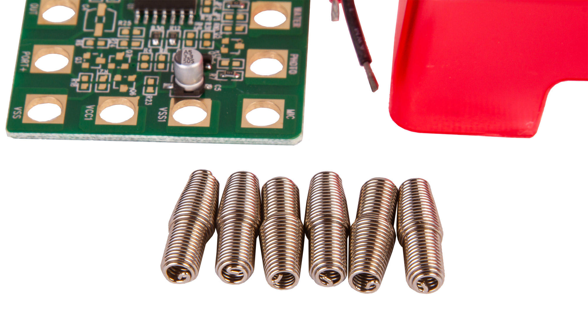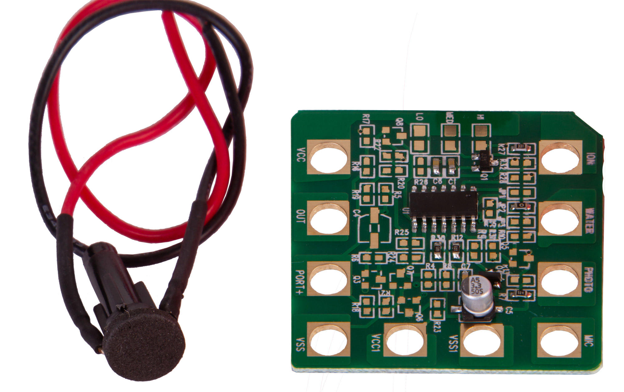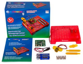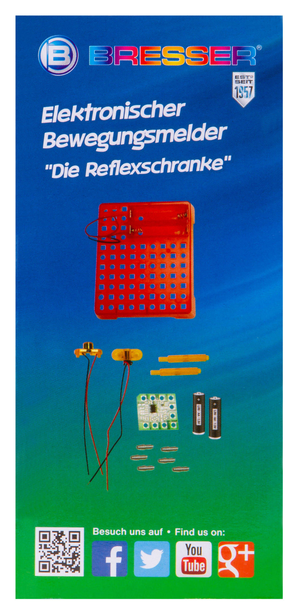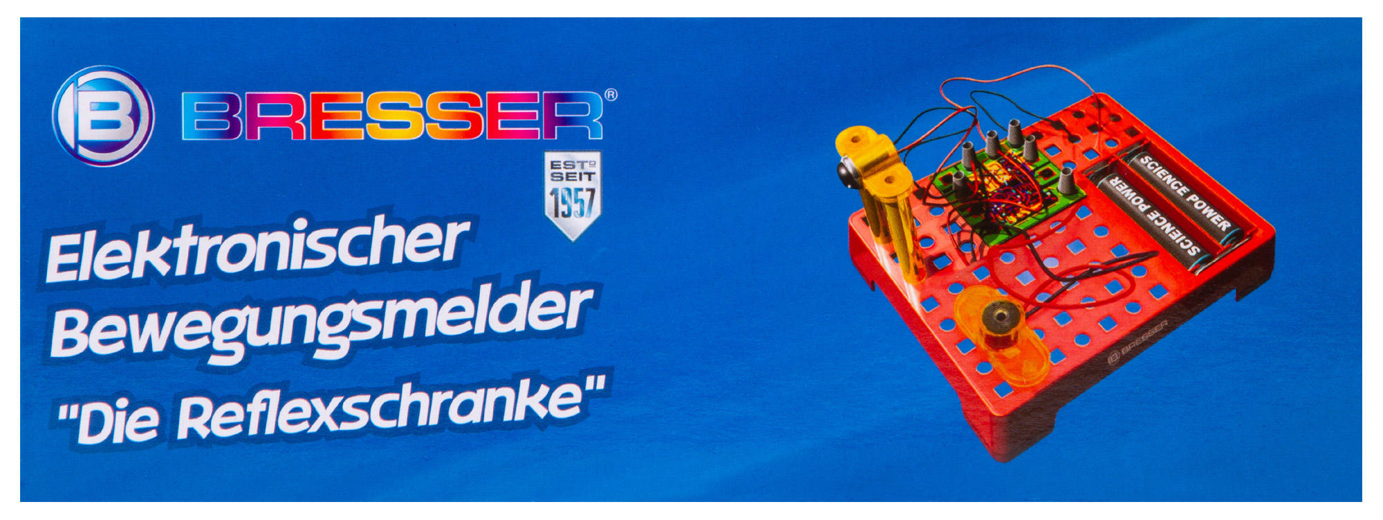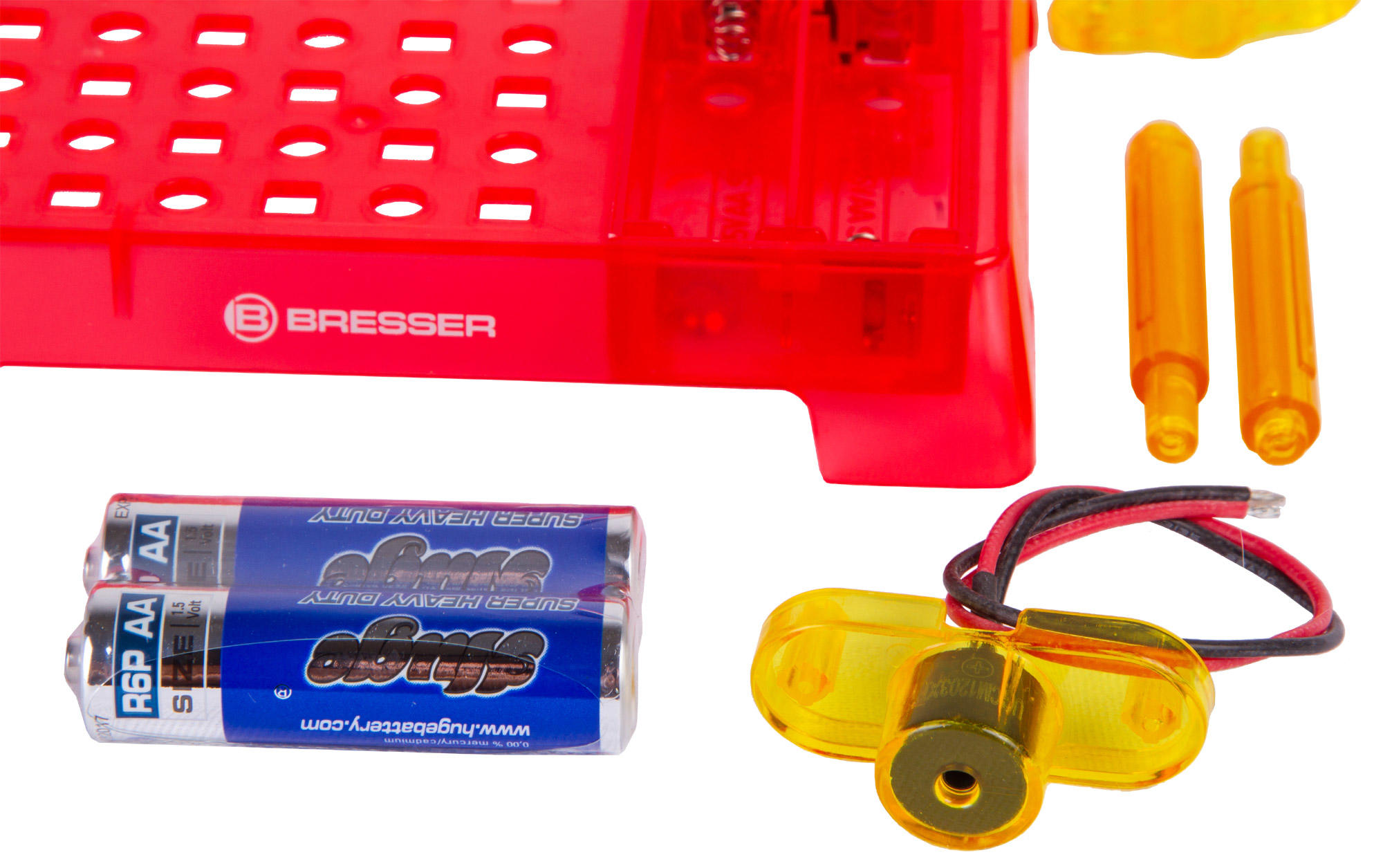 Набор Bresser Junior «Датчик движения» позволяет собрать настоящий датчик движения, похожий на те, что устанавливают в автоматические двери в торговых центрах. Он состоит из элементов, которые ребенок должен собрать в работающую микросхему по прилагаемому руководству. В итоге получится прибор, который будет издавать звуковой сигнал, если поднести к нему руку или пройти мимо.