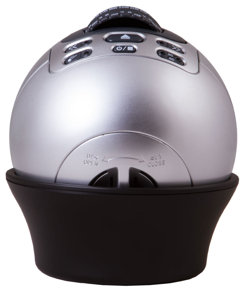 Астропланетарий строит реалистичное объемное изображение ночного неба. Вы увидите 8600 звезд и 61 созвездие. Прибор комплектуется 2 дисками-слайдами: на одном звезды изображены в виде точек, на другом светлыми линиями показаны контуры созвездий. Проекция медленно поворачивается для имитации суточного вращения Земли. Одним нажатием кнопки можно активировать функцию «падающих звезд».