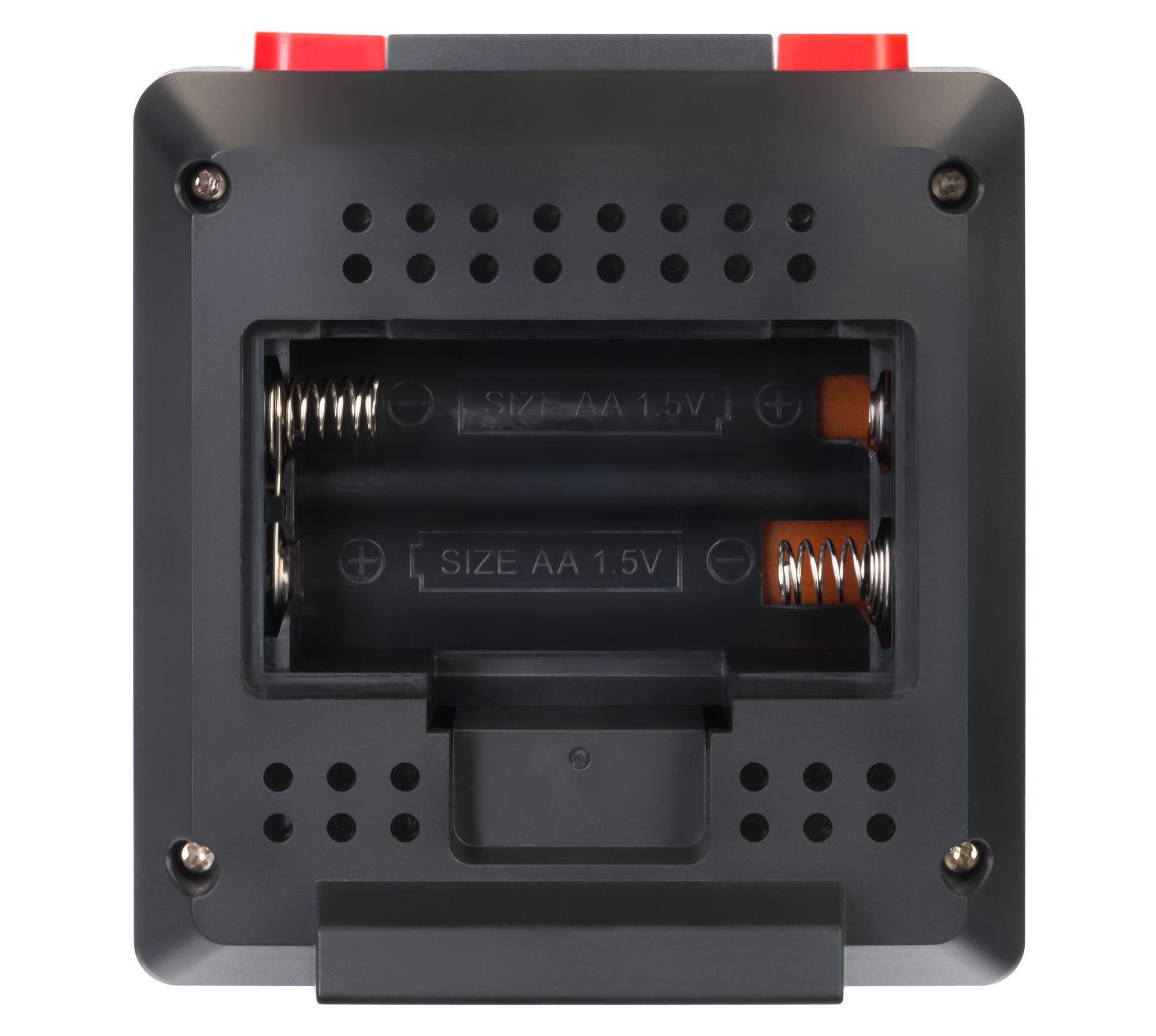 На внешней панели расположены монохромный экран и кнопки управления. Кнопка будильника расположена сверху. Информация на экране подана четко и ясно, она разделена на блоки и хорошо читается даже с большого расстояния. В ночное время, чтобы увидеть время или температуру, можно включить подсветку.