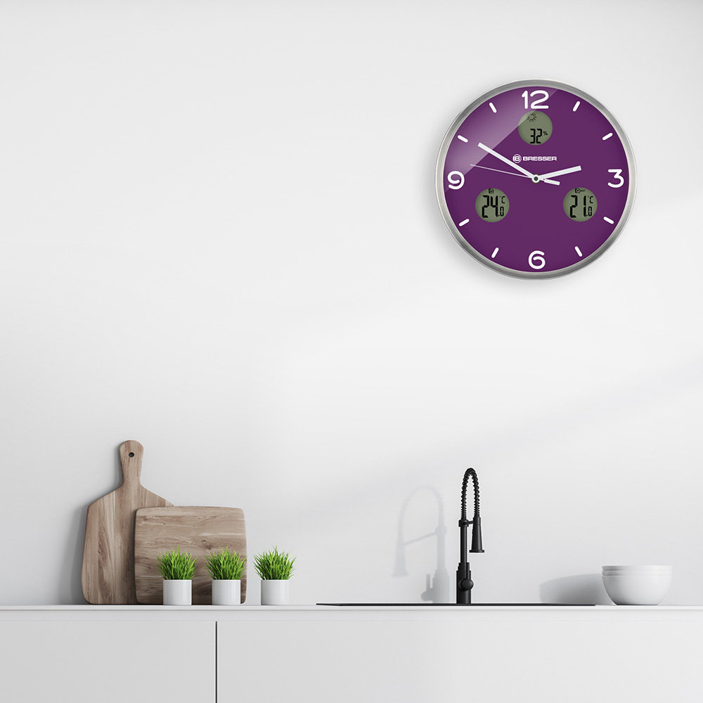 Настенные часы Bresser MyTime io NX Thermo/Hygro – прекрасный подарок коллеге или родственнику. Они интересно и ярко выглядят и имеют не одну, а сразу несколько встроенных функций. Прибор показывает время, измеряет влажность воздуха, определяет температуру внутри и вне помещения. В комплектацию включен беспроводной термодатчик.