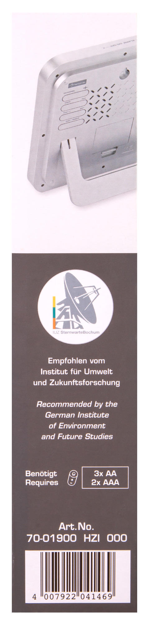 | Источник питания | 3 батарейки типа AA (нет в комплекте), наружный датчик: батарейки типа AАА, 1,5 В – 2 шт. (нет в комплекте) |