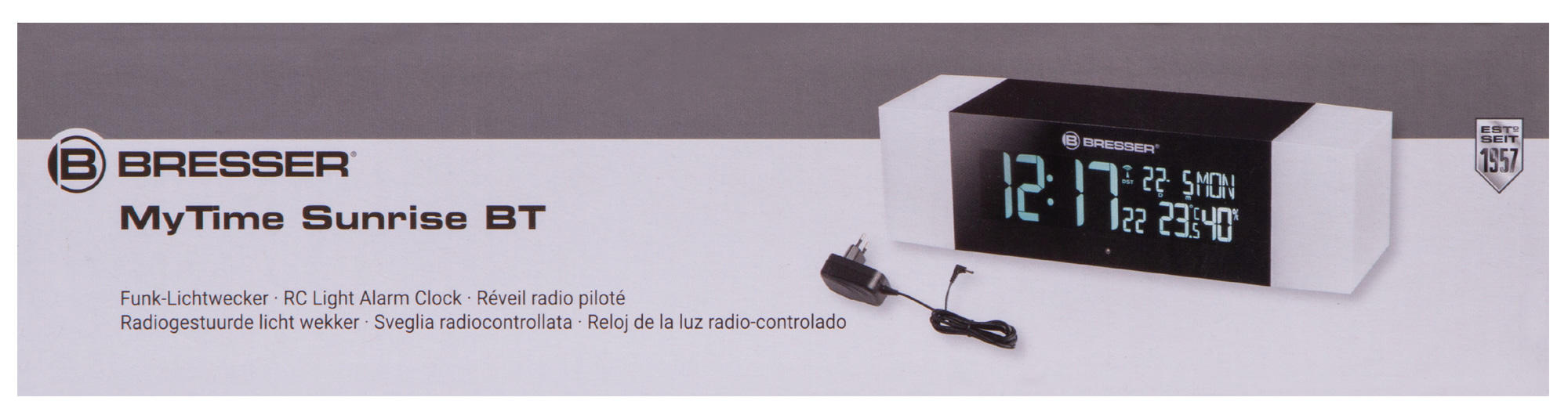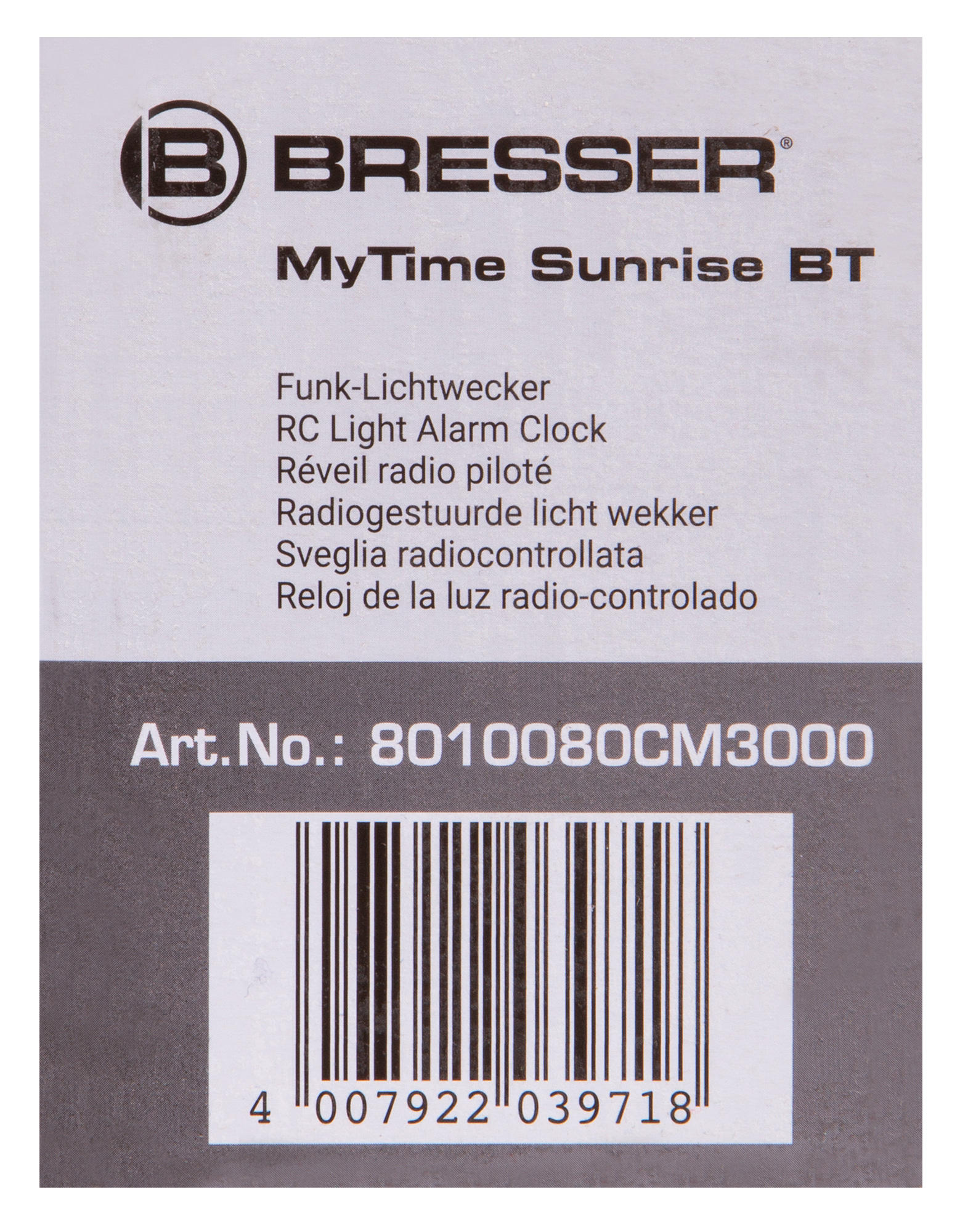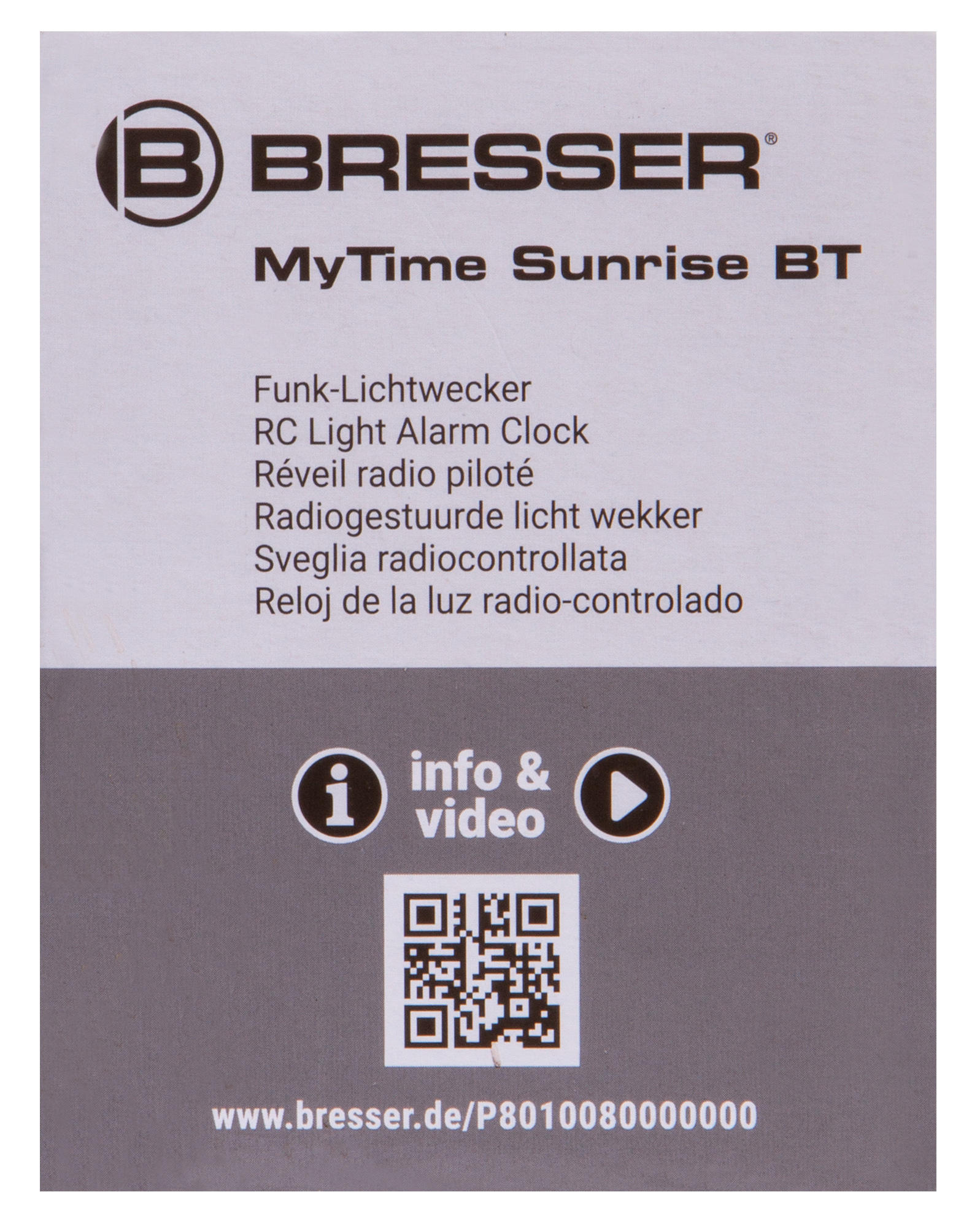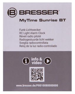 У прибора есть встроенный Bluetooth. Через беспроводное соединение к нему можно подключить смартфон, тогда Bresser MyTime Sunrise Bluetooth будет проигрывать мелодию будильника, установленную на мобильном устройстве. Также в качестве сигнала будильника можно выбрать классический звуковой сигнал или любимую радиостанцию.