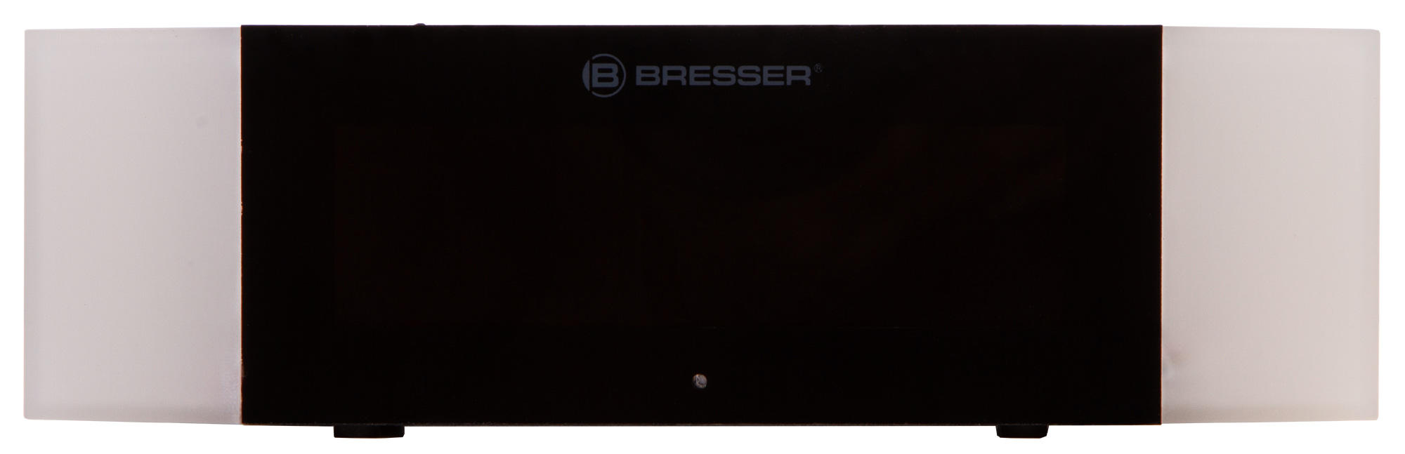 Bresser MyTime Sunrise Bluetooth – это многофункциональный прибор, который работает как классическое радио, часы с будильником и метеостанция, измеряющая температуру и влажность воздуха. Вся важная информация выводится на встроенный экран. Слева крупно показывается время, справа – дата, день недели и метеоданные. Боковые стенки прибора – это встроенная подсветка. Она может светить мягким приглушенным светом или окрашиваться в яркий насыщенный цвет. Режим работы подсветки можно выбрать.