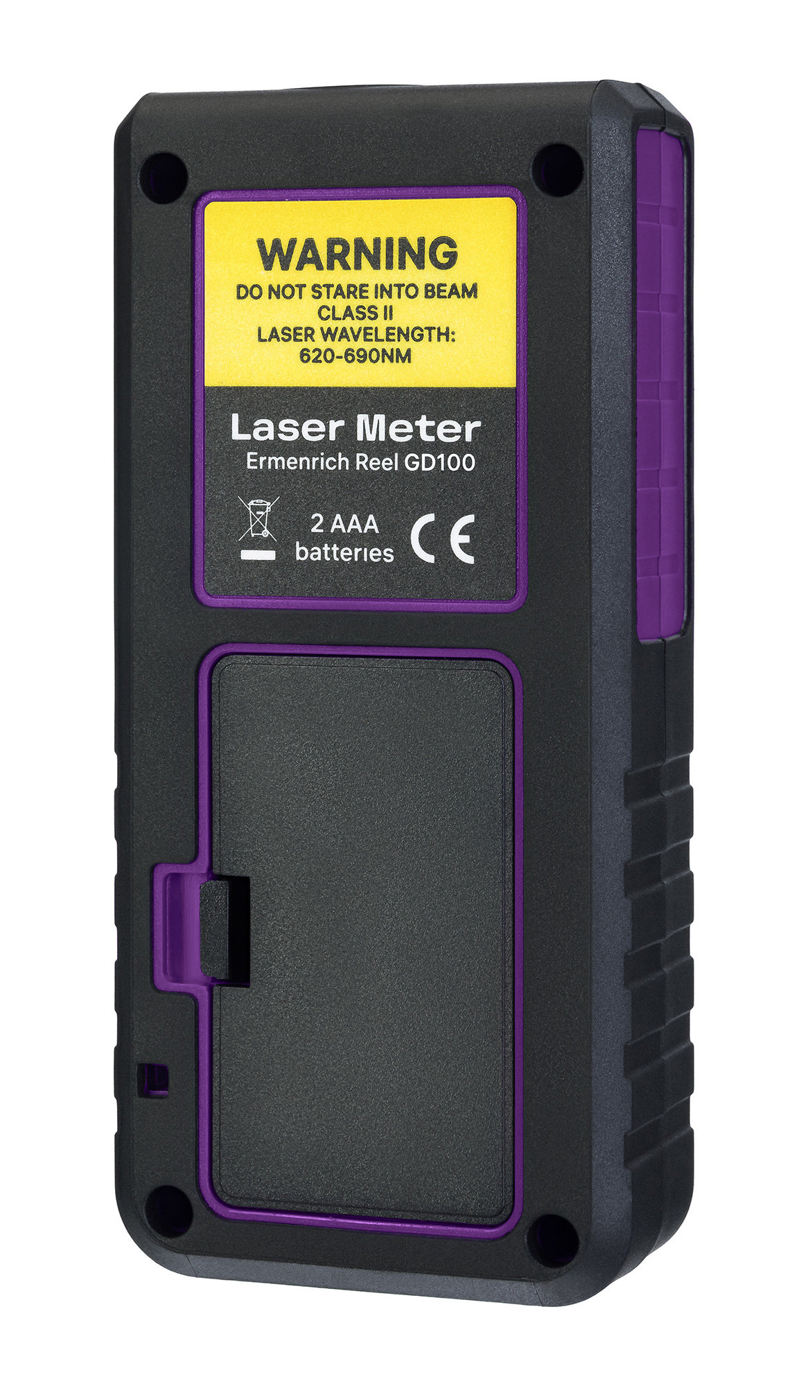 Ermenrich Reel PLUS GD100 – лазерная рулетка, разработанная для решения широкого спектра задач в проектировании, строительстве, ремонтных работах, кадастровом и маркшейдерском деле, промышленном производстве. Рулетка подходит для измерения длины любых частей строений и деталей, а также площадей и объемов помещений. При невозможности поместить устройство в начальную точку измеряемой линии встроенная функция «Пифагор» позволяет провести замер на основе косвенных измерений.