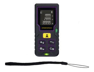 Ermenrich Reel PLUS GD40 – лазерная рулетка, которая найдет самое широкое применение при измерении линейных размеров, площадей и объемов помещений, зданий и сооружений. Ее возможности пригодятся при монтаже сборных конструкций, подгонке деталей большого размера и проч. Рулетка осуществляет измерения в ручном и автоматическом режимах. Также устройство производит расчеты необходимых параметров на основе косвенных данных измерений (функция «Пифагор»), что облегчает работу в стесненных условиях и помещениях сложной формы.