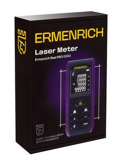 Лазерная рулетка Ermenrich Reel PRO GE60 – многофункциональное устройство для измерения расстояний, объема, площади и углов. Прибор позволяет делать точные замеры даже в сложных условиях, где нет возможности попасть лазером в нужную точку – функция «Пифагор» рассчитывает расстояние на основании промежуточных измерений.