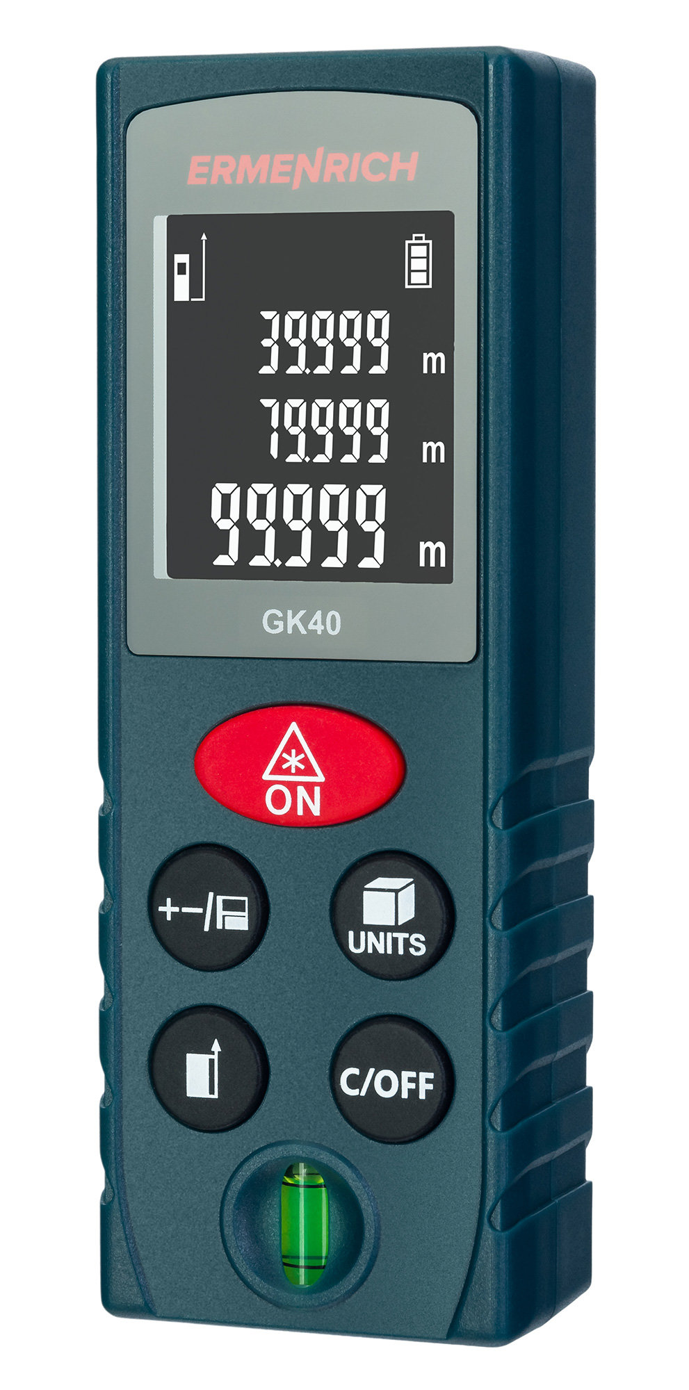Лазерная рулетка Ermenrich Reel PLUS GK40 позволяет делать точные замеры расстояний, площади и объема в ручном или автоматическом режиме. Функция «Пифагор» позволяет определять расстояние до нужной точки даже в сложных условиях, используя данные промежуточных измерений. Диапазон работы – от 0,05 до 40 метров, что достаточно для решения большинства строительных и бытовых задач.