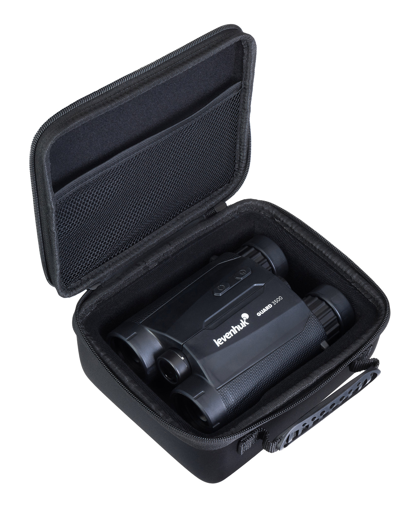 Бинокль Levenhuk Guard 3500 со встроенным лазерным дальномером – это прибор, подходящий для использования как профессионалами, так и любителями, сочетающий в себе функции наблюдательного и измерительного инструмента. 8-кратное увеличение и широкое поле зрения позволяют пользователю вести обзорные наблюдения, изучать мелкие детали окружающей среды и отслеживать цели, а дальномер с рабочей дистанцией до 3500 метров помогает дополнительно измерять расстояния до объектов (видимые, горизонтальные) и определять углы. Levenhuk Guard 3500 будет полезен во многих ситуациях: на охоте, в походных условиях, при решении тактических задач, во время тренировок по спортивной стрельбе, при проведении охранных мероприятий.