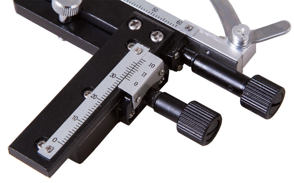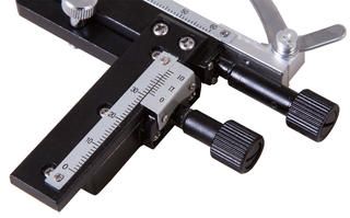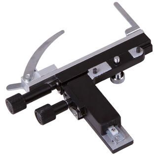 Препаратоводитель Levenhuk MS3 – это съемный аксессуар. Он устанавливается на предметный столик при помощи штифтов и фиксируется крепежным винтом. Установка несложная и занимает мало времени.