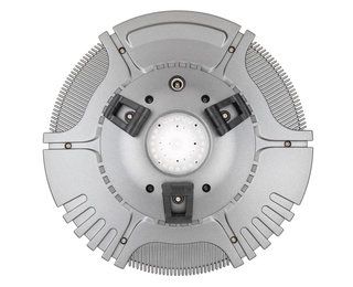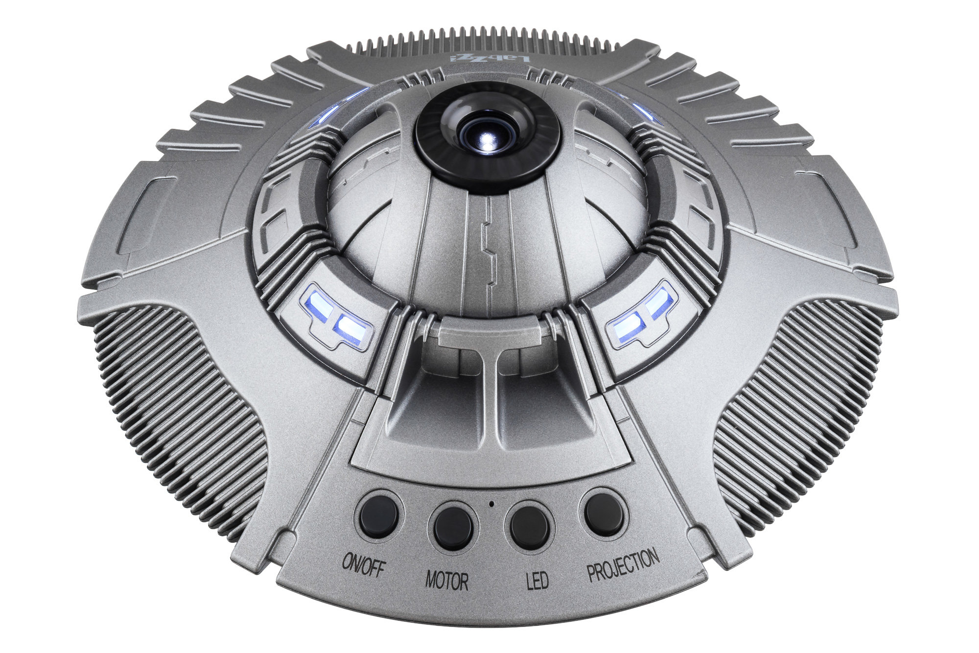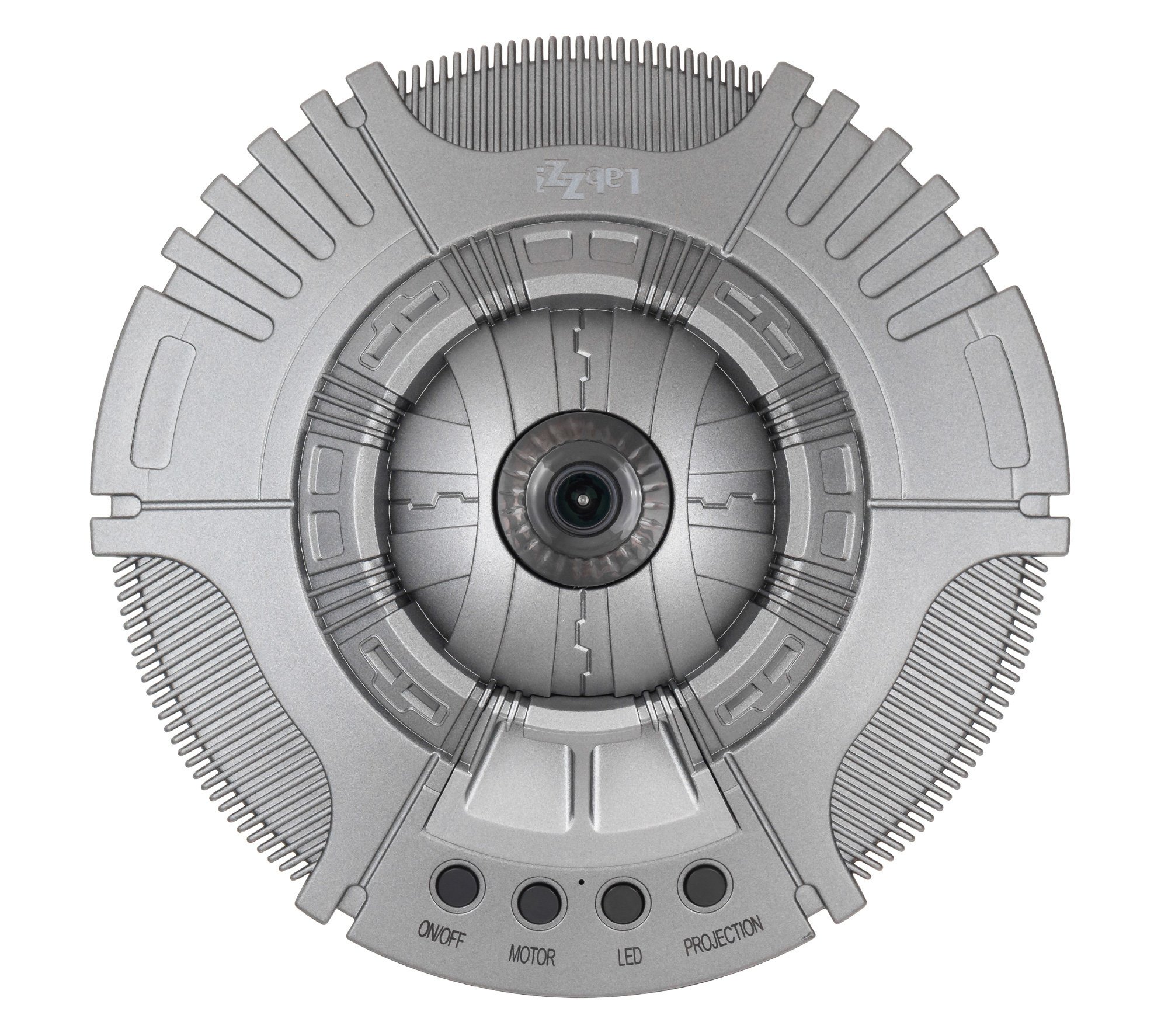 Изображение проецируют на потолок или на стену, площадь проекции – 30 квадратных метров. С помощью отдельной кнопки запускают вращение проекции, двукратным нажатием на кнопку меняют направление вращения. В астропланетарии Levenhuk LabZZ SP50 НЛО предусмотрена ручная настройка резкости с помощью фокусировочного колеса на корпусе. В комплект также входит пульт управления с питанием от батареек (не поставляются с устройством).