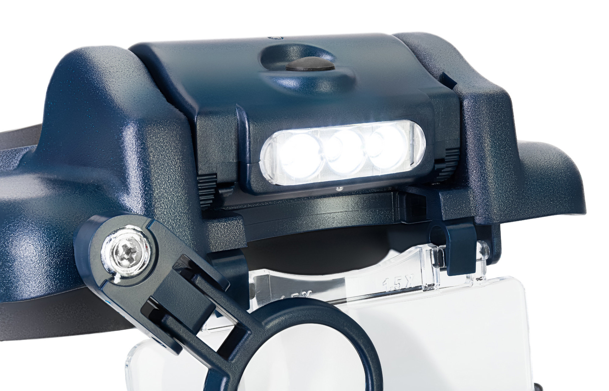 Налобная лупа Levenhuk Discovery Crafts DHR 10 наиболее удобна в ситуациях, когда требуется точно настраивать освещение рабочей области. Ее подсветка имеет регулировку яркости, также она работает не от батареек, а от аккумулятора. Подзарядка осуществляется через комплектный кабель, поэтому обслуживание лупы не требует затрат. Эта модель отлично подходит для выполнения точных работ: пайки, ремонта мелкой техники и электроники, ювелирных и часовых работ.