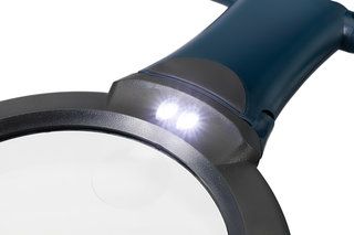 По основному диаметру линза дает увеличение 2,5 крата, по малому (25 мм) – 5 крат. Оптика сделана из прочного и легкого полимерного оптического стекла, передает контрастную и детализированную картинку без искажений. Светодиодная подсветка работает от батареек, создает равномерное освещение рабочей области и позволяет работать даже в полной темноте.