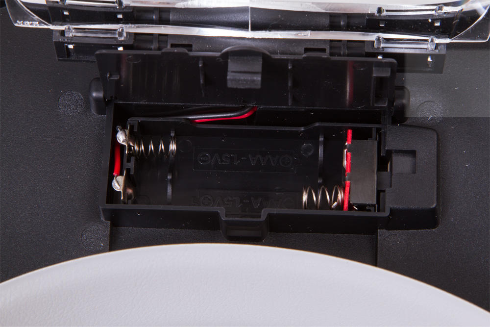 Для работы в условиях плохой освещенности лупа снабжена встроенной светодиодной подсветкой. Она яркая, освещает большую область, работает от батареек типа ААА.