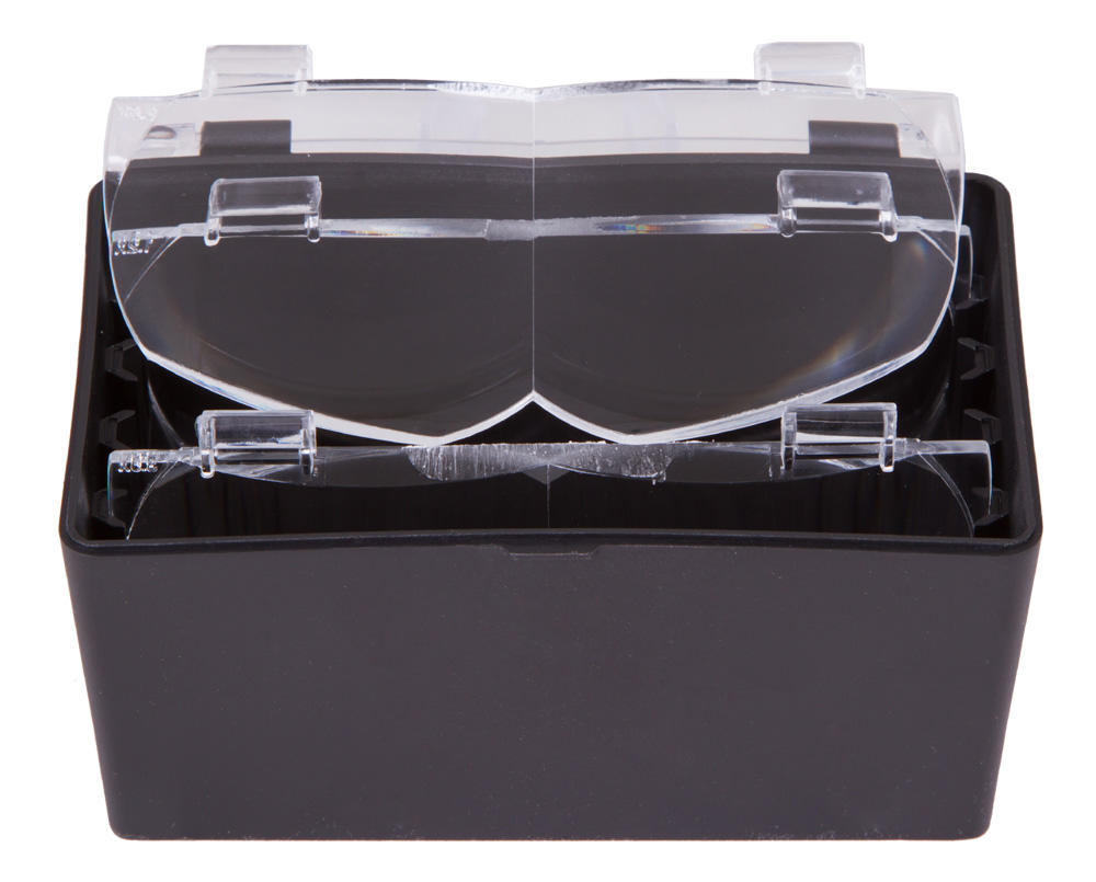 Налобная лупа Levenhuk Zeno Vizor H3 идет в комплекте со сменными линзами. Диапазон кратности линз составляет от 1,2 до 3,5 крат. Меняя их, вы сможете подобрать оптимальное увеличение для своих целей. Все линзы изготовлены из специального оптического пластика.