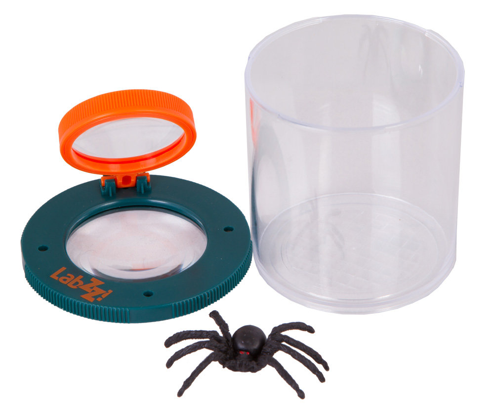 Лупа-стакан Levenhuk LabZZ C1 создана для детей от 3 лет. Юные исследователи смогут изучать живую природу, не причиняя ей никакого вреда. Любого небольшого обитателя лесов или полей – бабочку, муху, жука или лягушонка – можно поместить внутрь стакана и изучать через прозрачные стенки. В крышку стакана вмонтирована лупа с увеличением 6x, на крышке закреплена дополнительная откидная лупа с увеличением 3x. Через них можно рассмотреть обитателей стакана в мельчайших деталях. Определить размеры изучаемых образцов можно при помощи измерительной сетки, нанесенной на дно стакана.