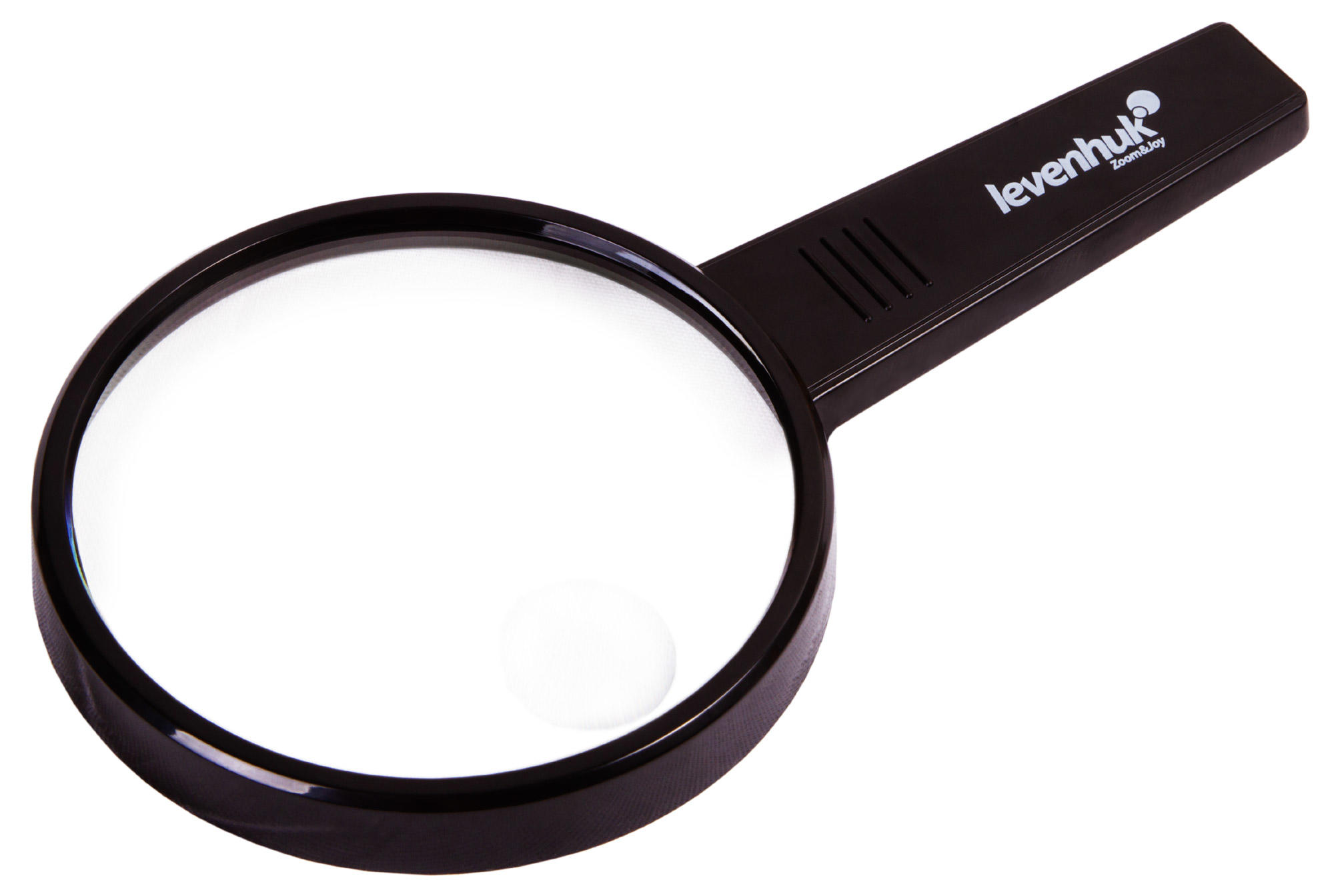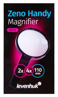 Levenhuk Zeno Handy ZH13 – лупа с линзой большого диаметра (110 мм), которая дает 2-кратное увеличение. В ней расположена малая линза диаметром 25 мм, которая дает большее увеличение – 4 крата. Лупа отлично подходит для рассматривания мелких объектов, чтения текста и изучения небольших деталей на поверхностях предметов.