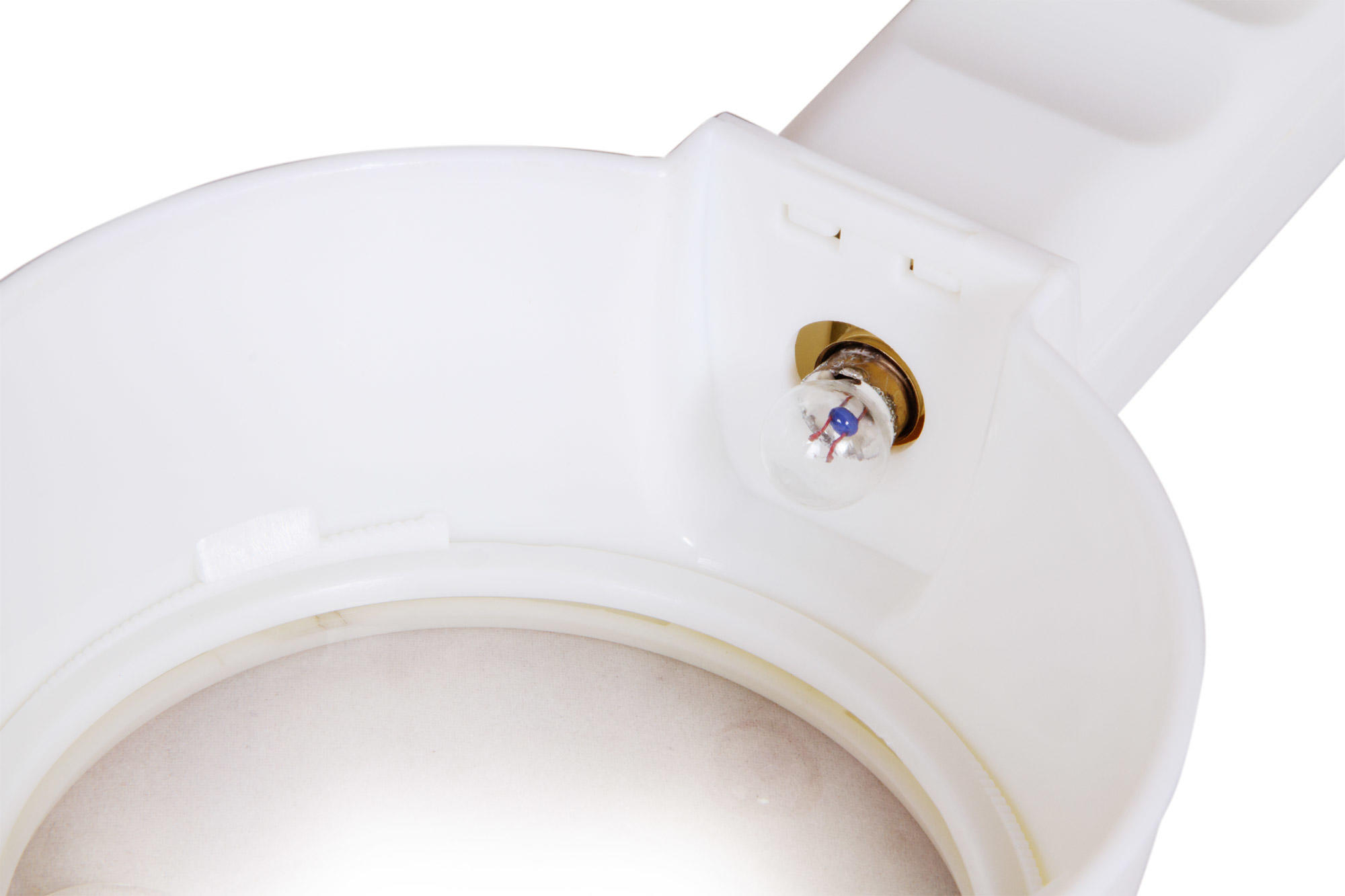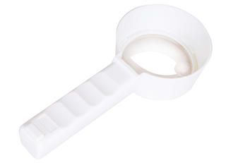 Линза сделана из пластика, оправа и ручка – тоже пластиковые. Переключатель подсветки расположен на ручке. Чтобы использовать подсветку, нужны батарейки (нет в комплекте).