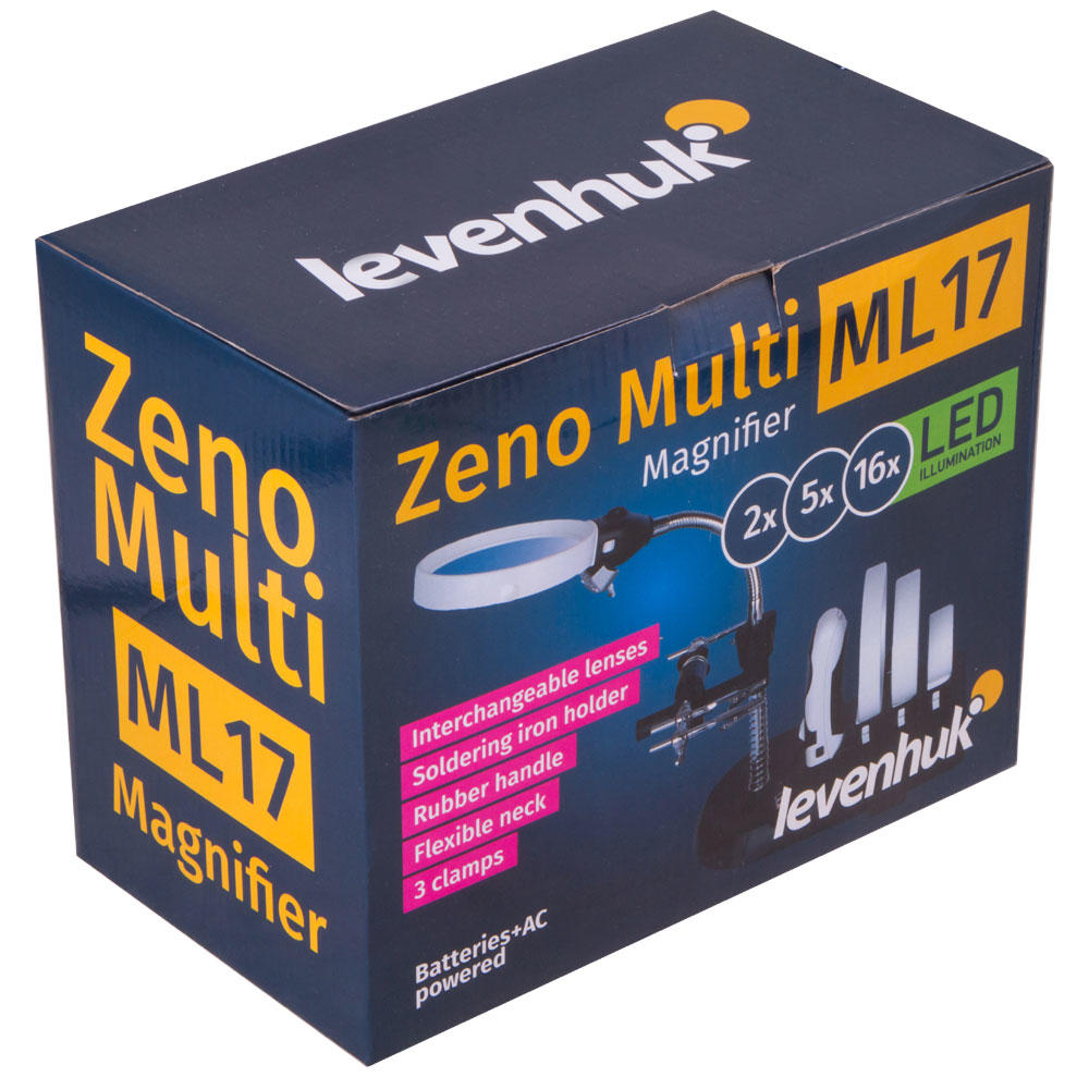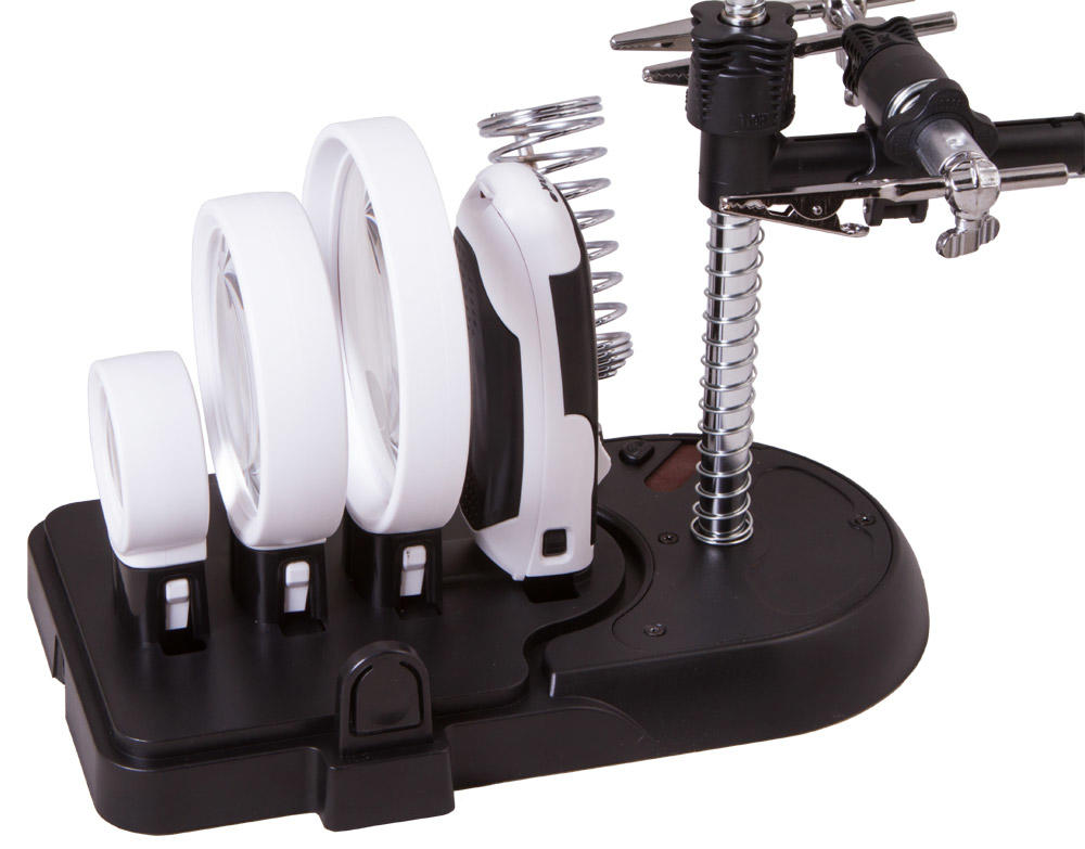 Мультилупа Levenhuk Zeno Multi ML17 – это функциональность, надежность и удобство использования. В ней вы найдете множество необходимых инструментов для выполнения точных работ: три лупы на ручке, три лупы на штативе, настольную лампу, держатели для плат и паяльника. В одном инструменте собрано множество полезных аксессуаров!