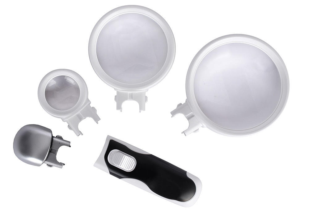 Более компактная и мобильная конфигурация – вариант со сменными линзами, установленными на ручку. Так получатся удобные просмотровые лупы, которые можно использовать для работы с графиками, чертежами, фотографиями и текстами. В ручке тоже присутствует подсветка.