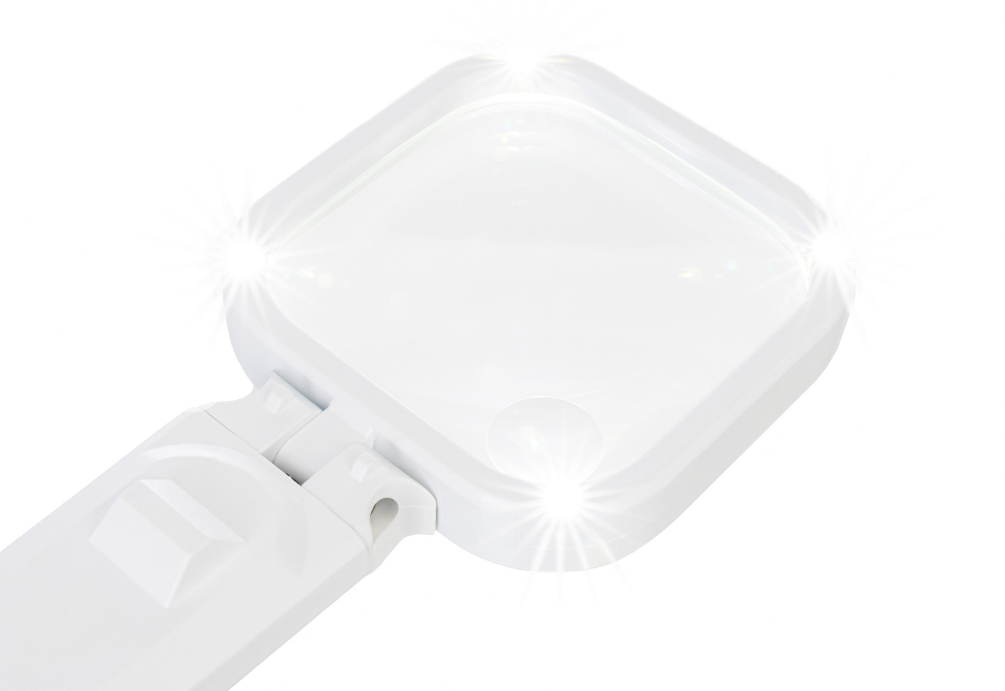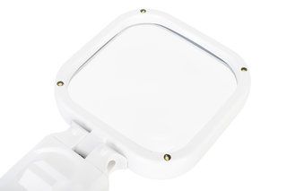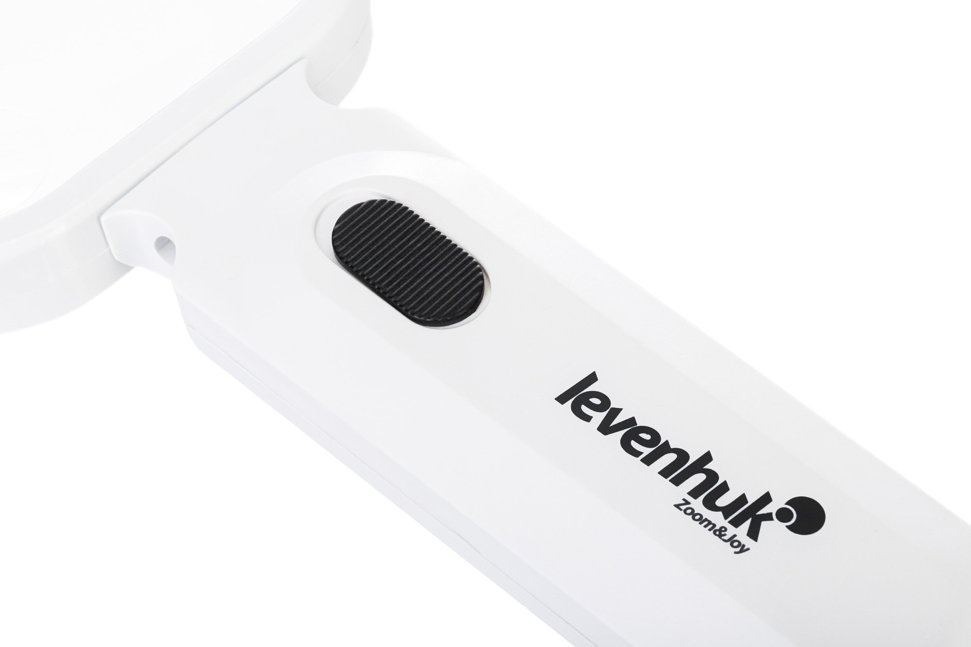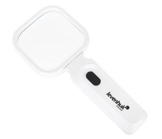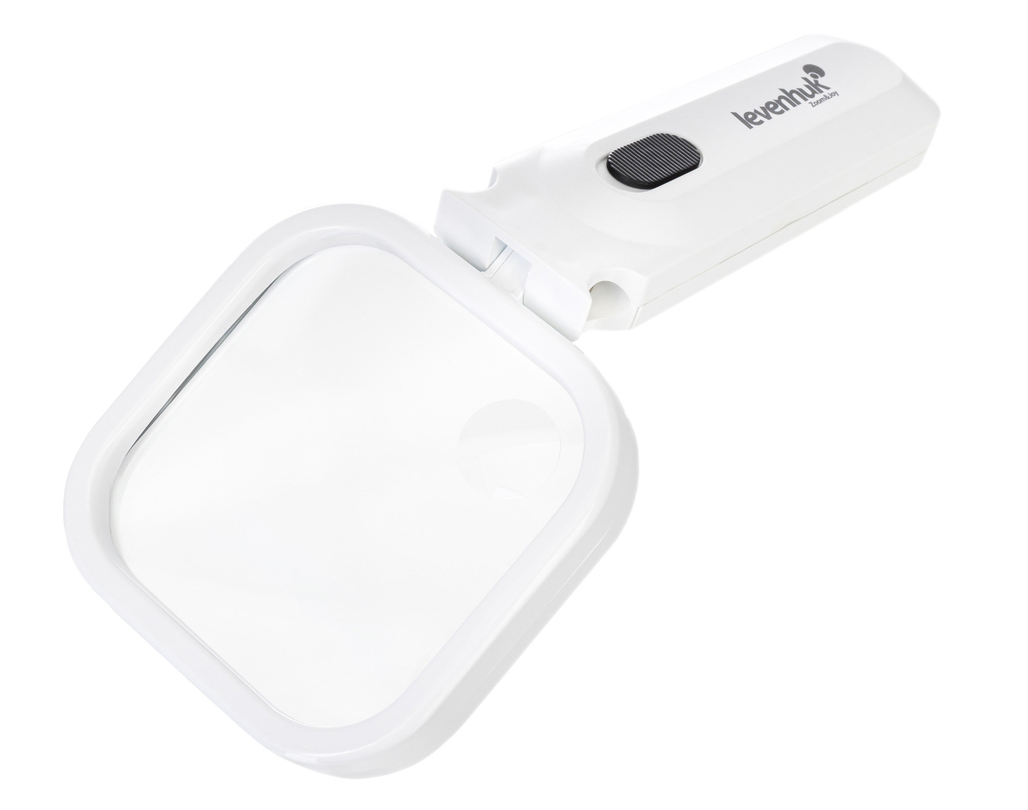 По основной рабочей области квадратная линза лупы Levenhuk Zeno Read ZR10 дает двукратное увеличение. Диаметр дополнительной 6-кратной линзы, имеющей круглую форму, составляет 2 сантиметра. Угол наклона линзы можно регулировать в широком диапазоне, подбирая наиболее комфортное расположение подсветки. Светодиоды работают от стандартных пальчиковых батареек (приобретаются отдельно).
