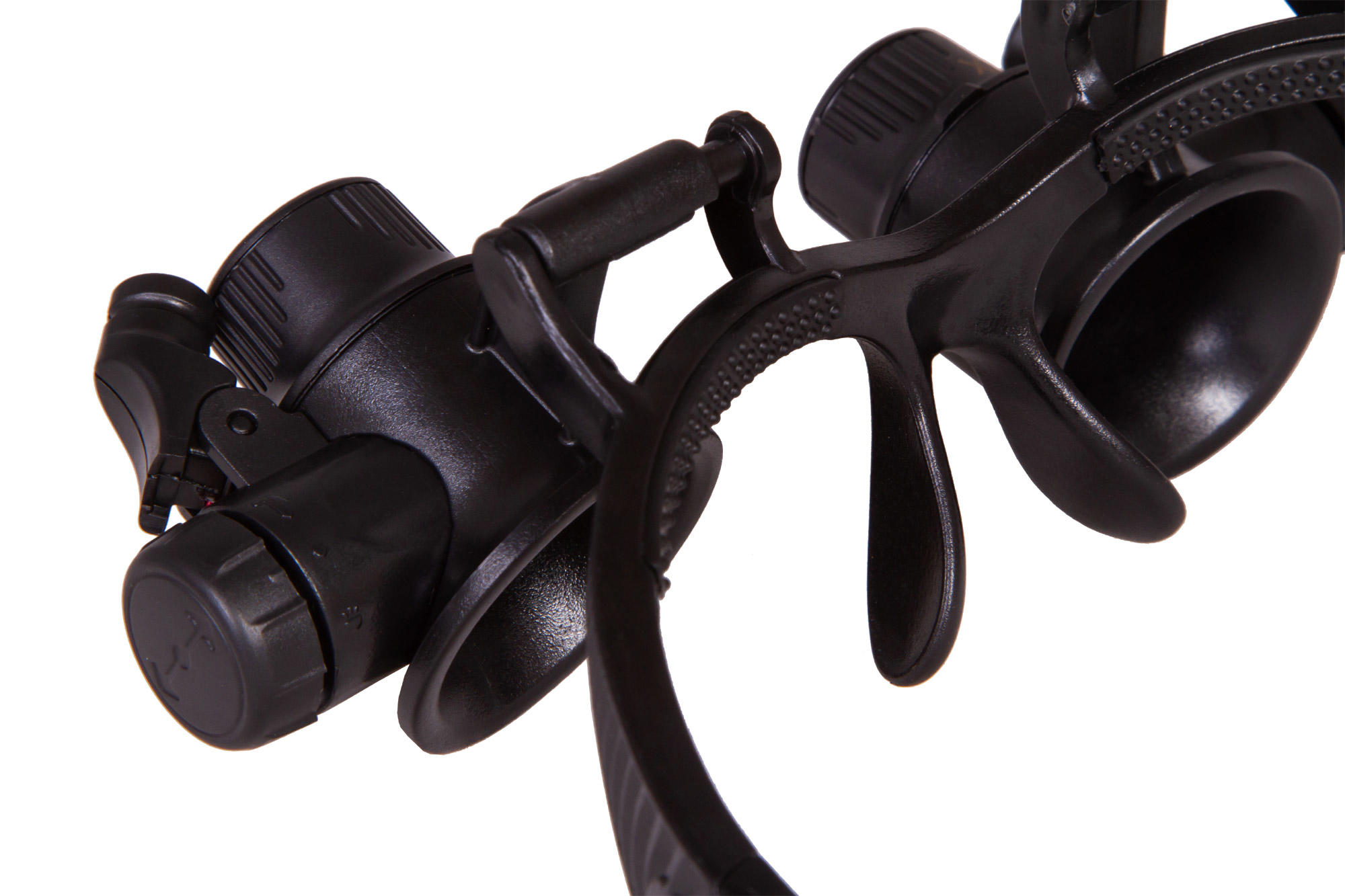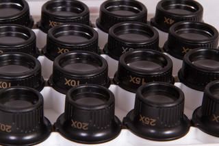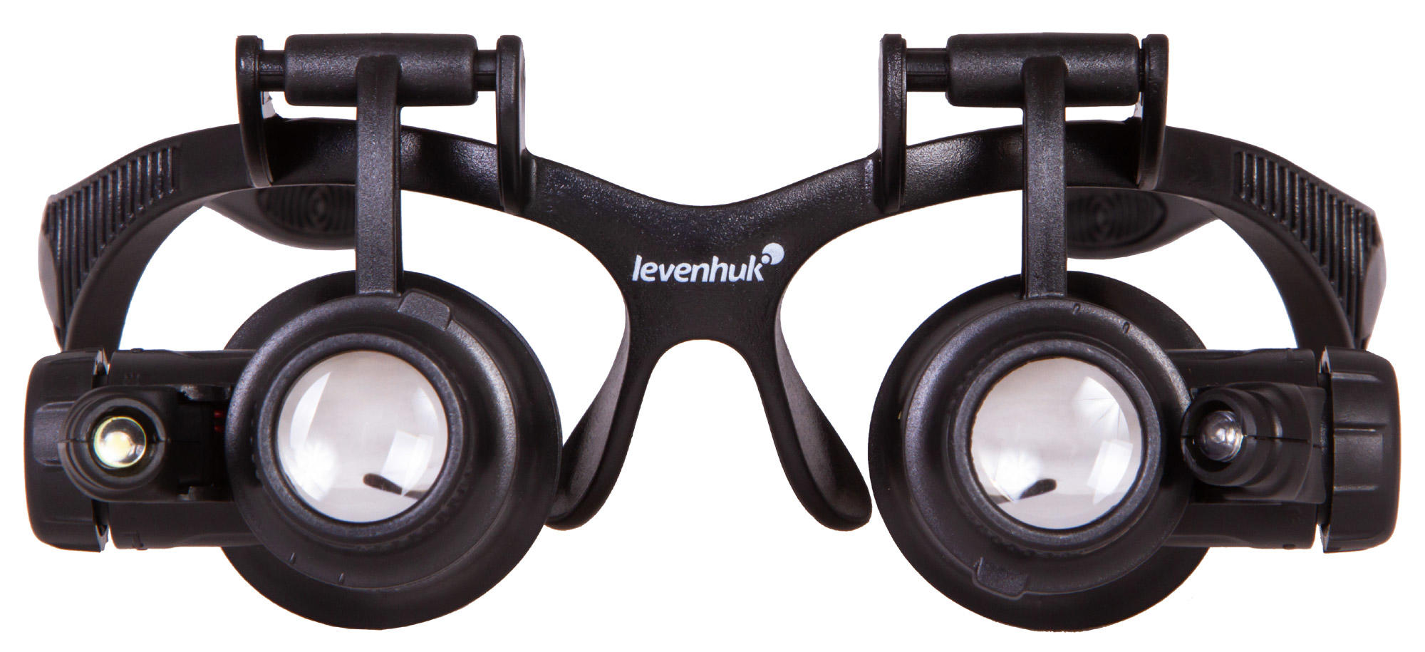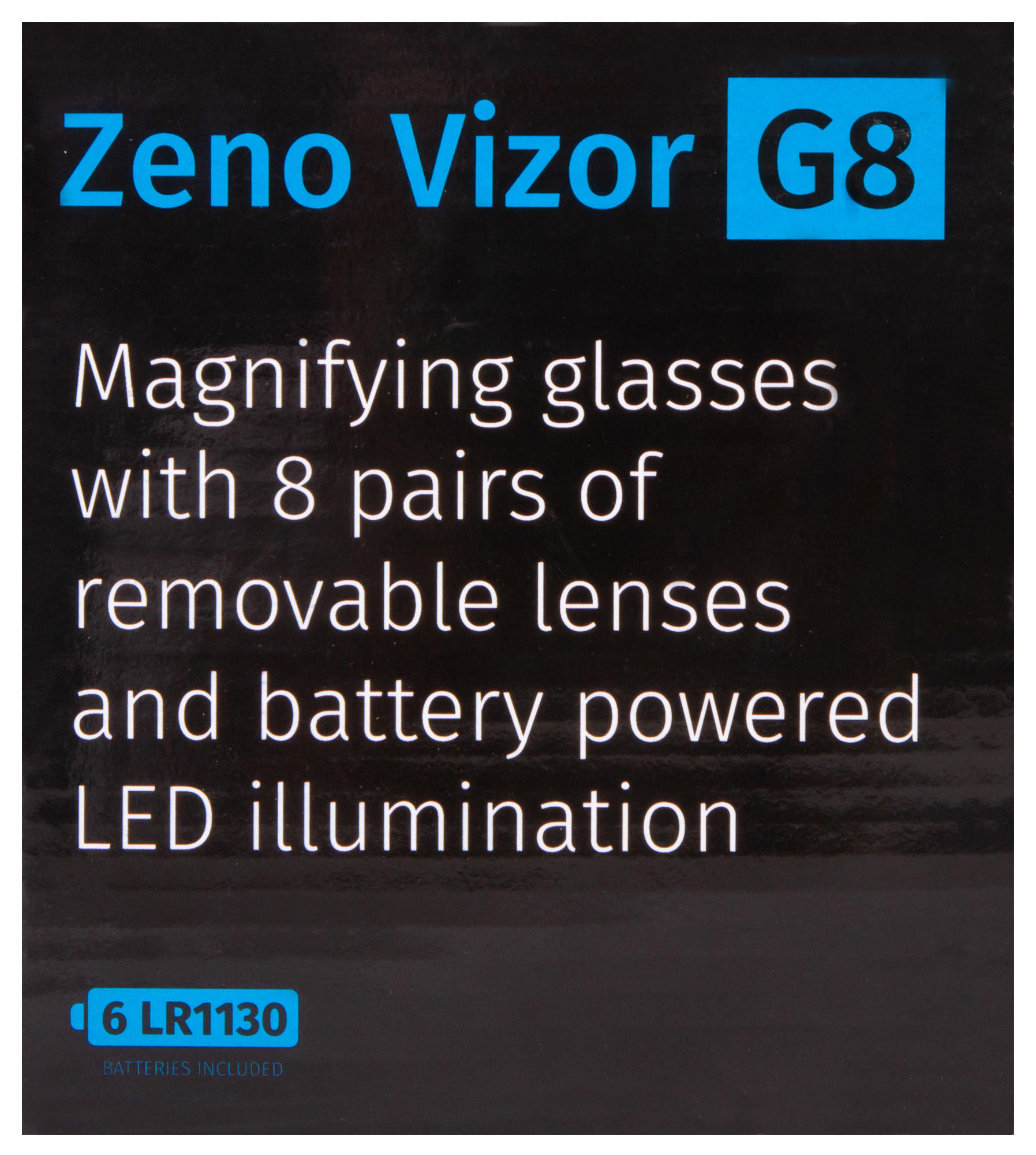 Лупа Levenhuk Zeno Vizor G8 поставляется с 8 комплектами парных линз разной кратности – от 2,5х до 25х. Линзы изготовлены из небьющегося оптического пластика высокого качества. Корпус выполнен из легкого пластика и практически не ощутим при ношении. Рядом с линзами располагаются два светодиода, работающие от батареек (есть в комплекте). Угол наклона светодиодов можно свободно регулировать. Яркая подсветка и портативный характер лупы позволяют работать даже в условиях отсутствия электричества.