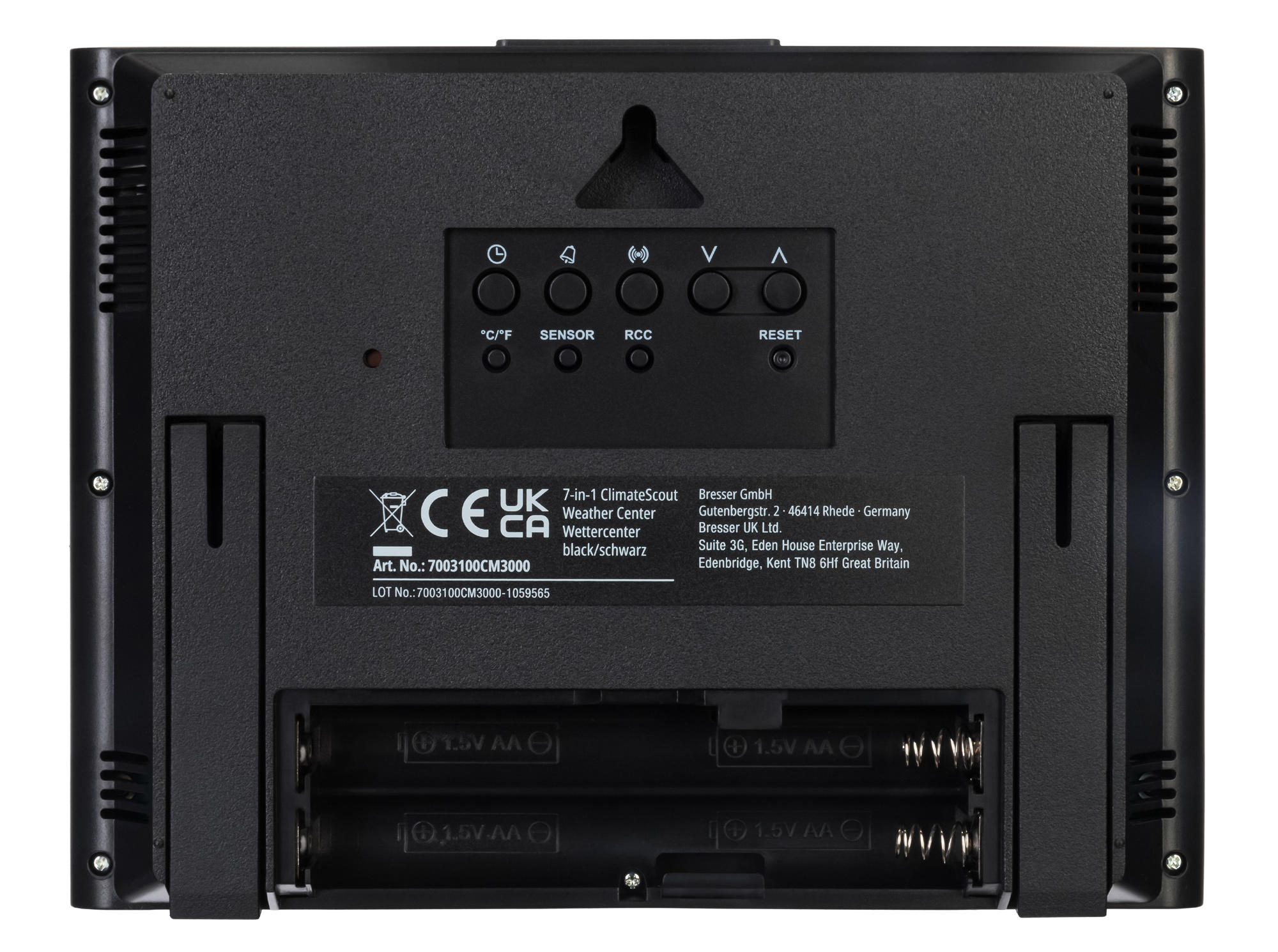 | Источник питания | метеостанция: батарейки типа АА, 1,5 В – 4 шт. (нет в комплекте), наружный датчик: батарейки типа АА, 1,5 В – 3 шт. (нет в комплекте) |