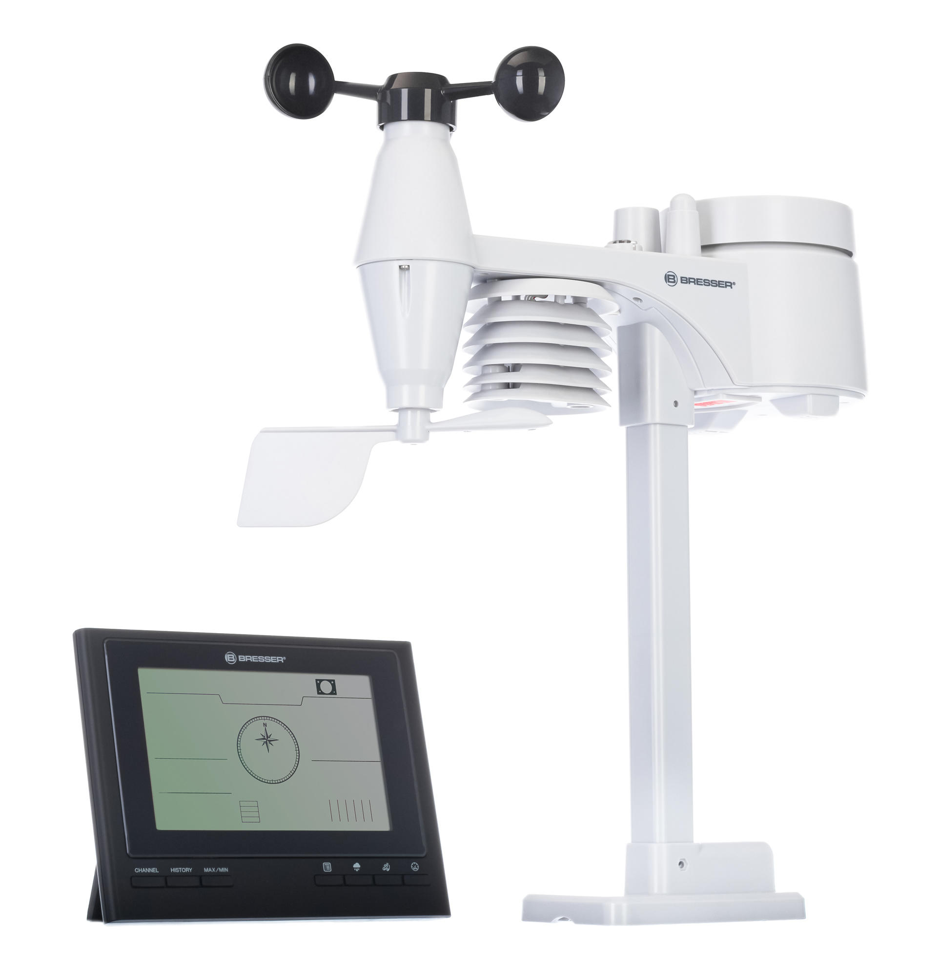 Bresser «7 в 1» ClimateScout Exclusive – это профессиональная метеостанция, с помощью которой можно отслеживать множество метеопоказателей. Она отличается высокой точностью измерений, позволяет собирать актуальную информацию о погоде и микроклимате, сохраняет данные за прошедшие 24 часа. Гаджет обладает не только стандартным функционалом, но также умеет определять УФ-индекс, уровень освещенности, индекс Бофорта, точку росу, уровень температуры «feels like» («ощущается как»). Прогноз погоды на ближайшее время тоже доступен.