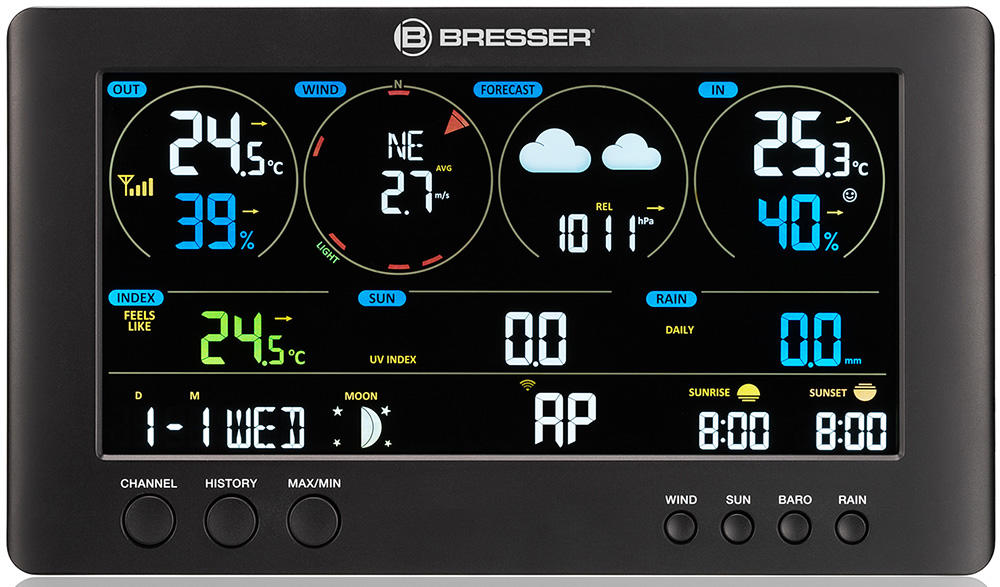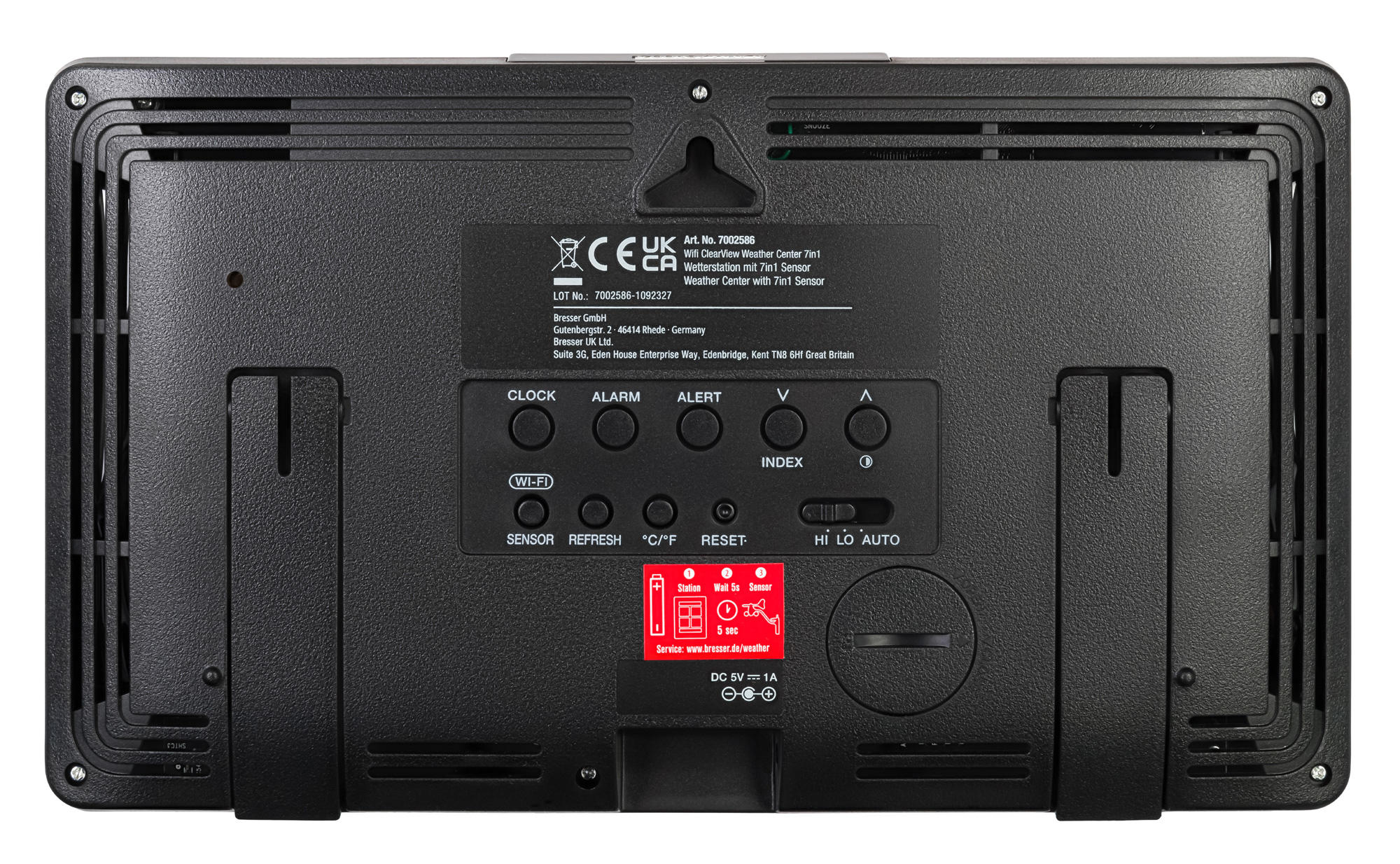 База для метеостанций Bresser Wi-Fi ClearView выручит в ситуации, если основной модуль метеостанции сломался или был утерян при переезде. Никаких проблем с подключением к имеющимся датчикам не возникнет – все будет работать как и прежде. База будет связываться с ними по радиоканалу и отображать всю собираемую информацию на встроенном экране.