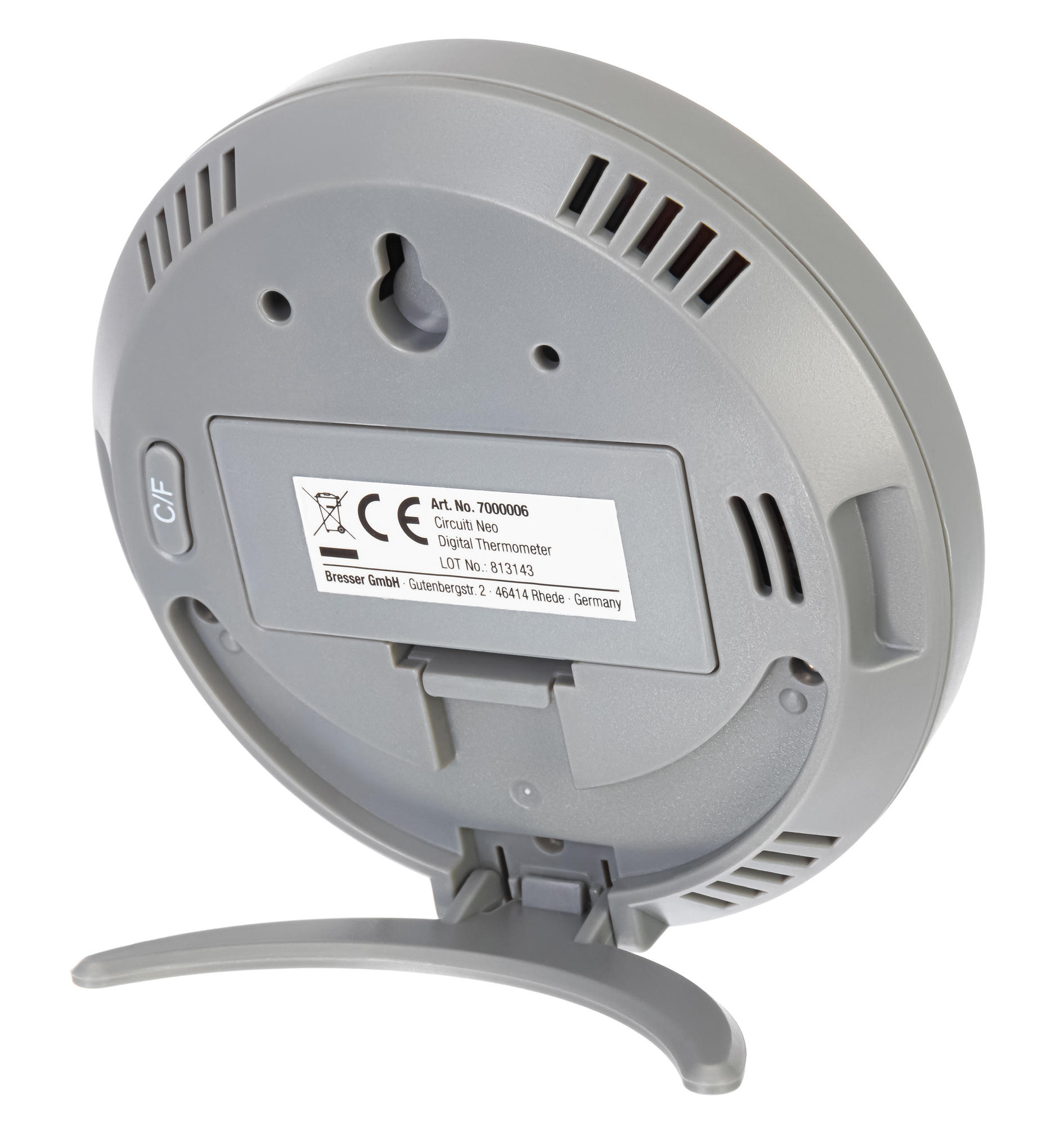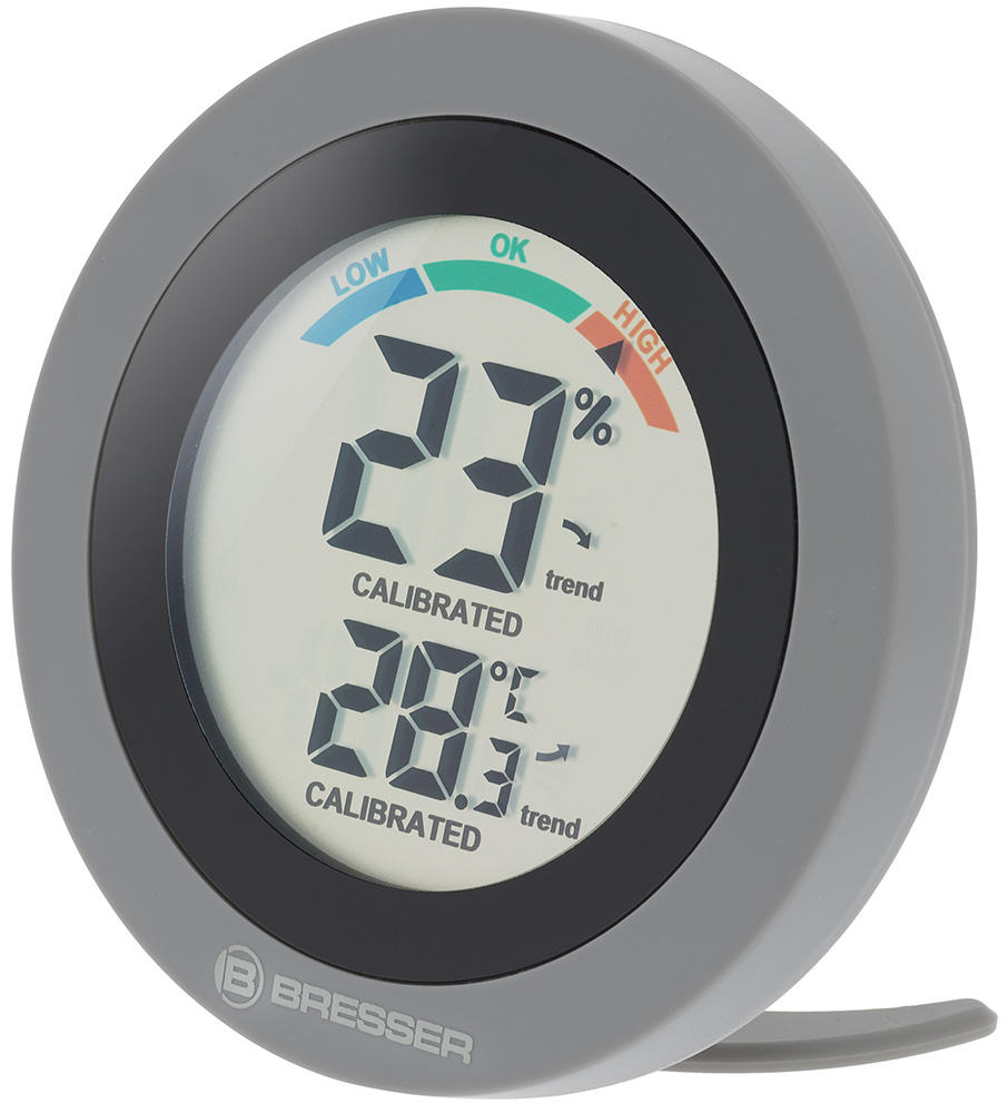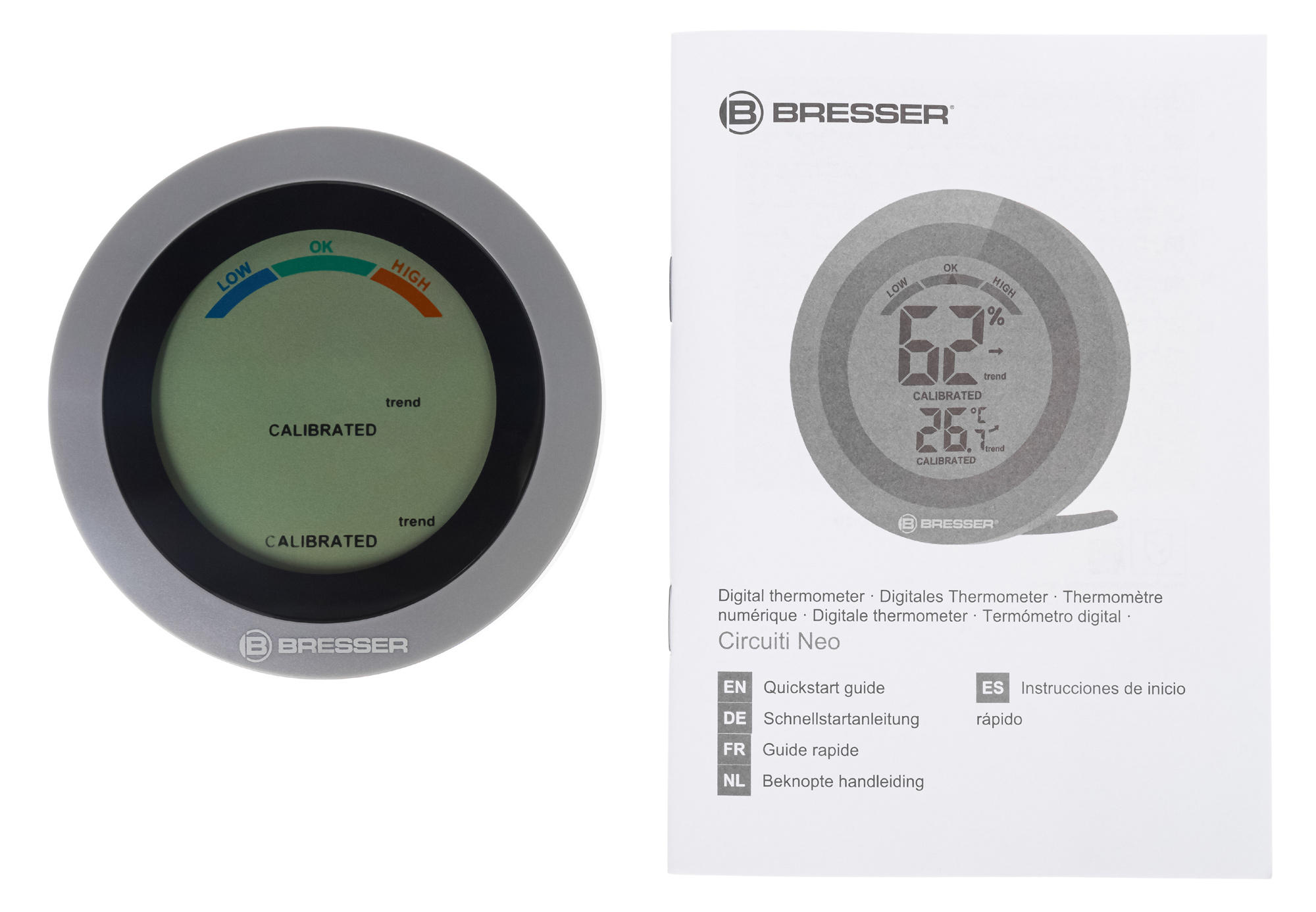 Bresser Circuiti Neo – небольшая комнатная метеостанция, которая измеряет температуру и влажность воздуха. Также на экране есть шкала уровня общего комфорта, по показаниям которой можно узнать, насколько благоприятен для человека микроклимат помещения. Красная зона указывает на слишком сухой воздух, а голубая – на чересчур влажный. Нормальная влажность расположена в зеленой области шкалы.