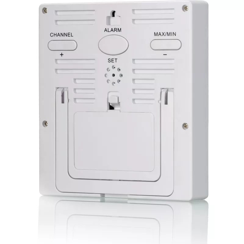 Датчики передают информацию на метеостанцию по радиоканалу, каждый по своему собственному. Основной модуль выводит ее на встроенный цифровой экран. На каждом датчике тоже есть экран, но на нем отображается только данные, получаемые им самим.